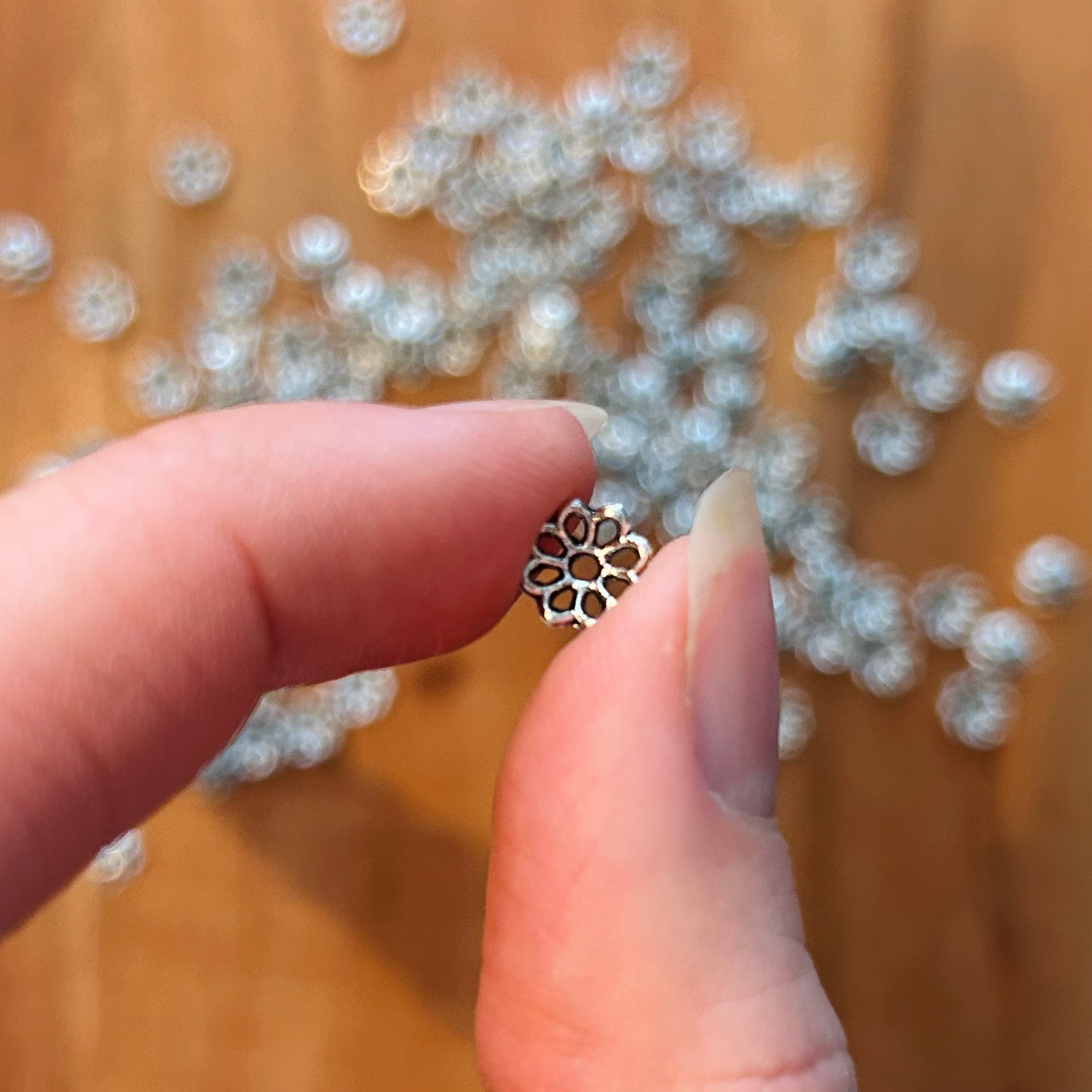 2 x Blumenperle aus Metall | in Silber | Für Mikromakramee, Schmuck & DIY‘s