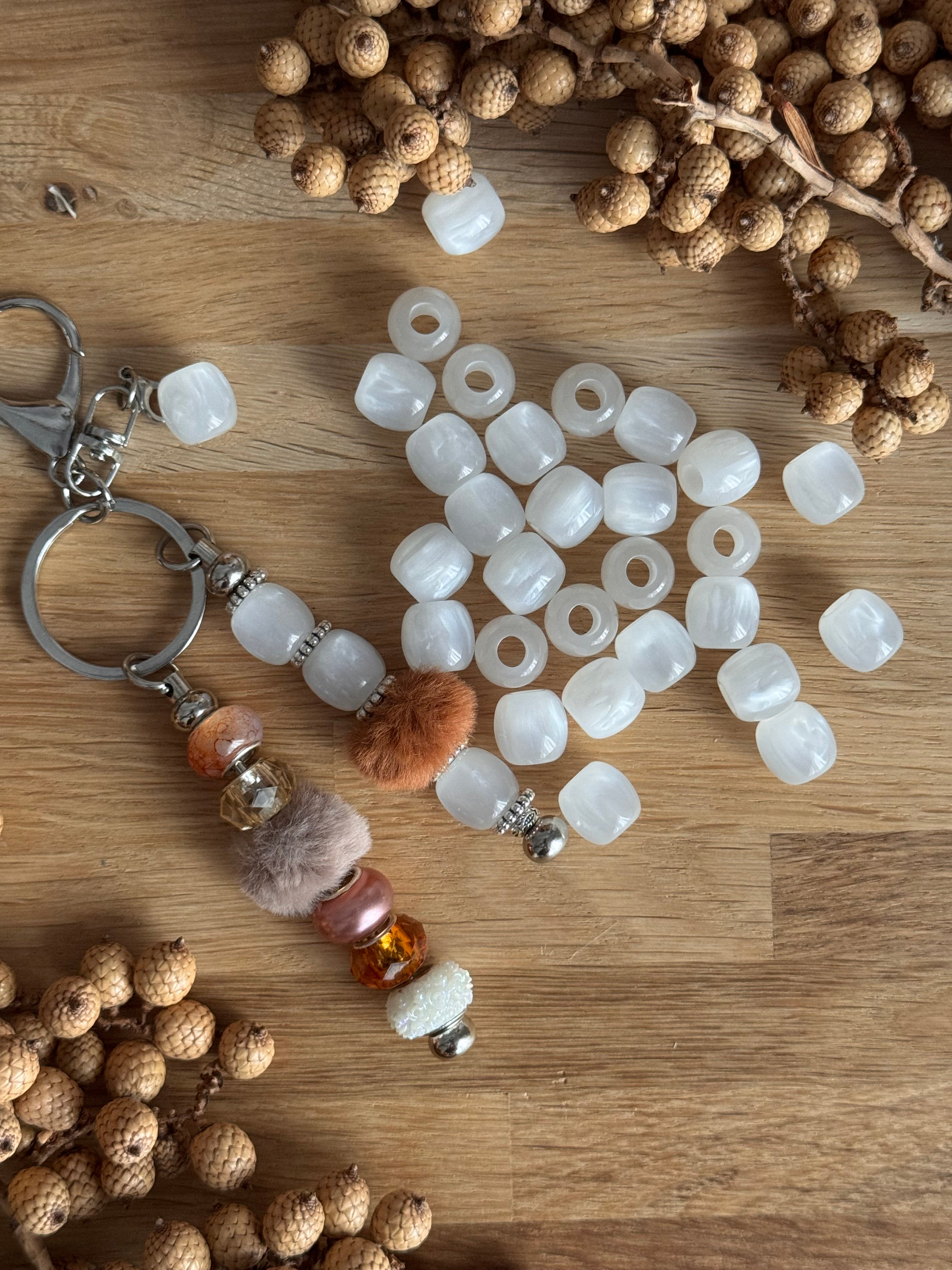 1 x Weiße Harz Fassperle mit großem Loch für DIY Schlüssel- und Taschenanhänger