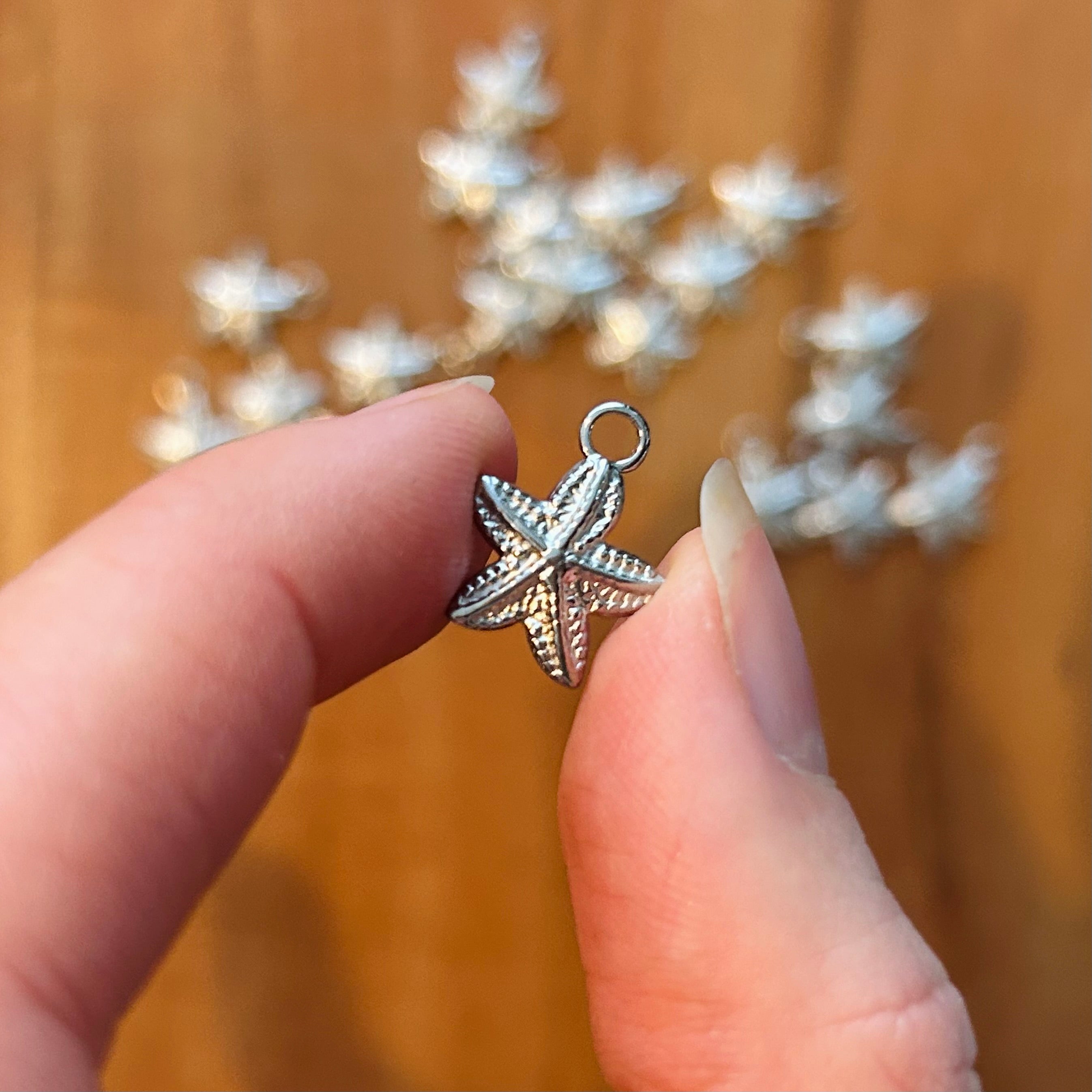 1 x Seestern-Anhänger aus Metall | in Silber | Für Makramee, Schmuck & DIY‘s
