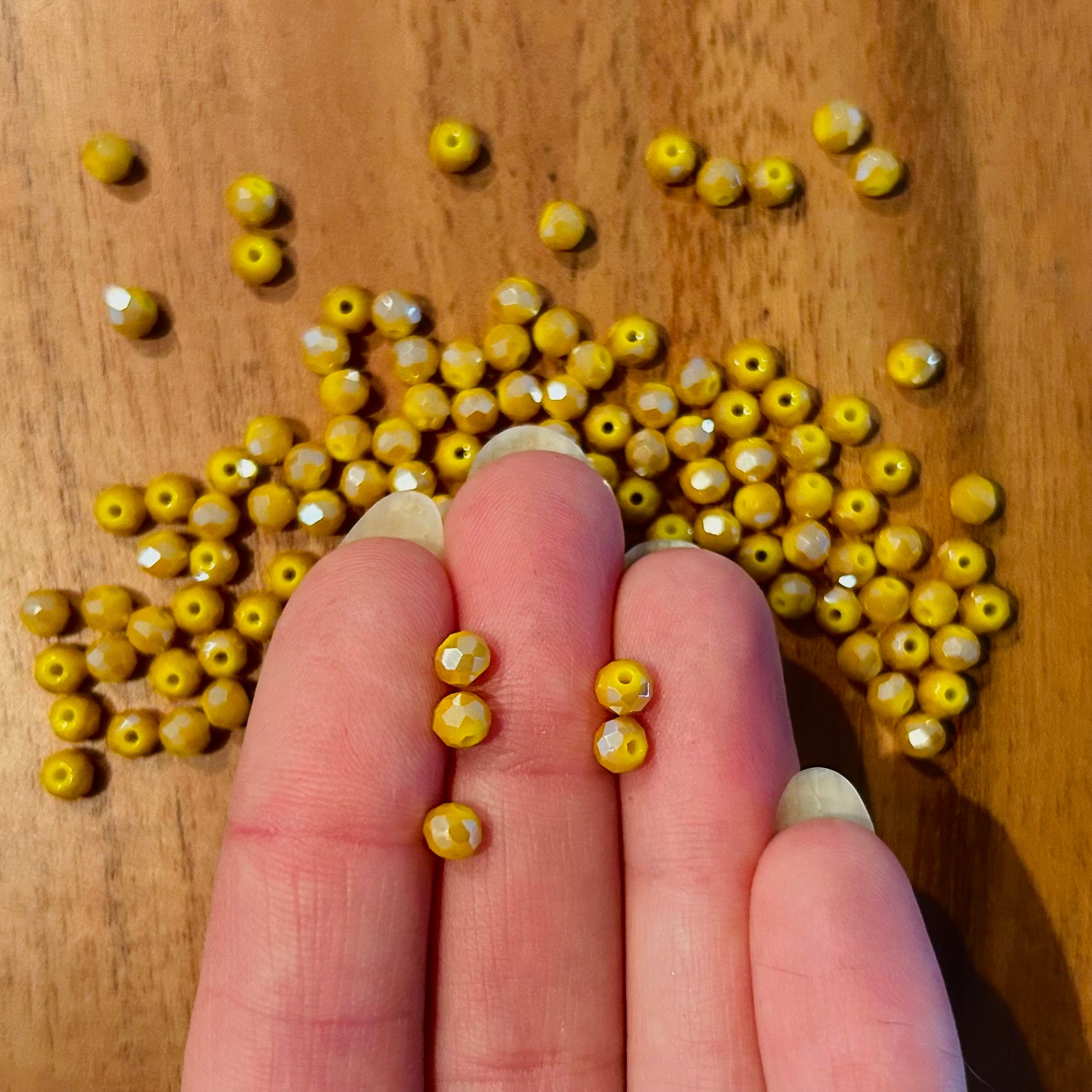 10 x Facettierte Glasperlen | in Amber-Gelb | 4 mm | Für Mikromakramee, Schmuck & DIY‘s