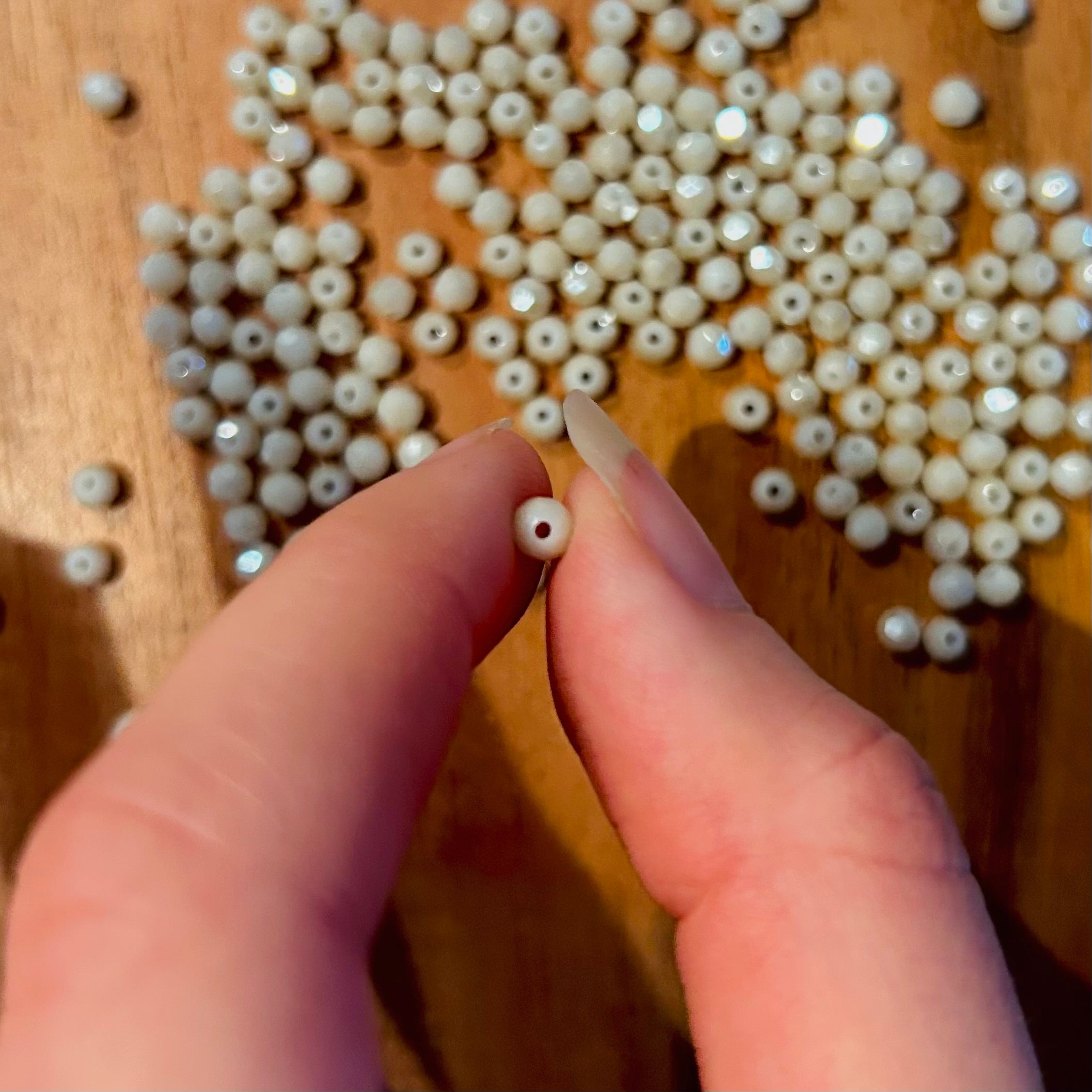 10 x Facettierte Glasperlen | in Weißer Champagner | 4 mm | Für Mikromakramee, Schmuck & DIY‘s