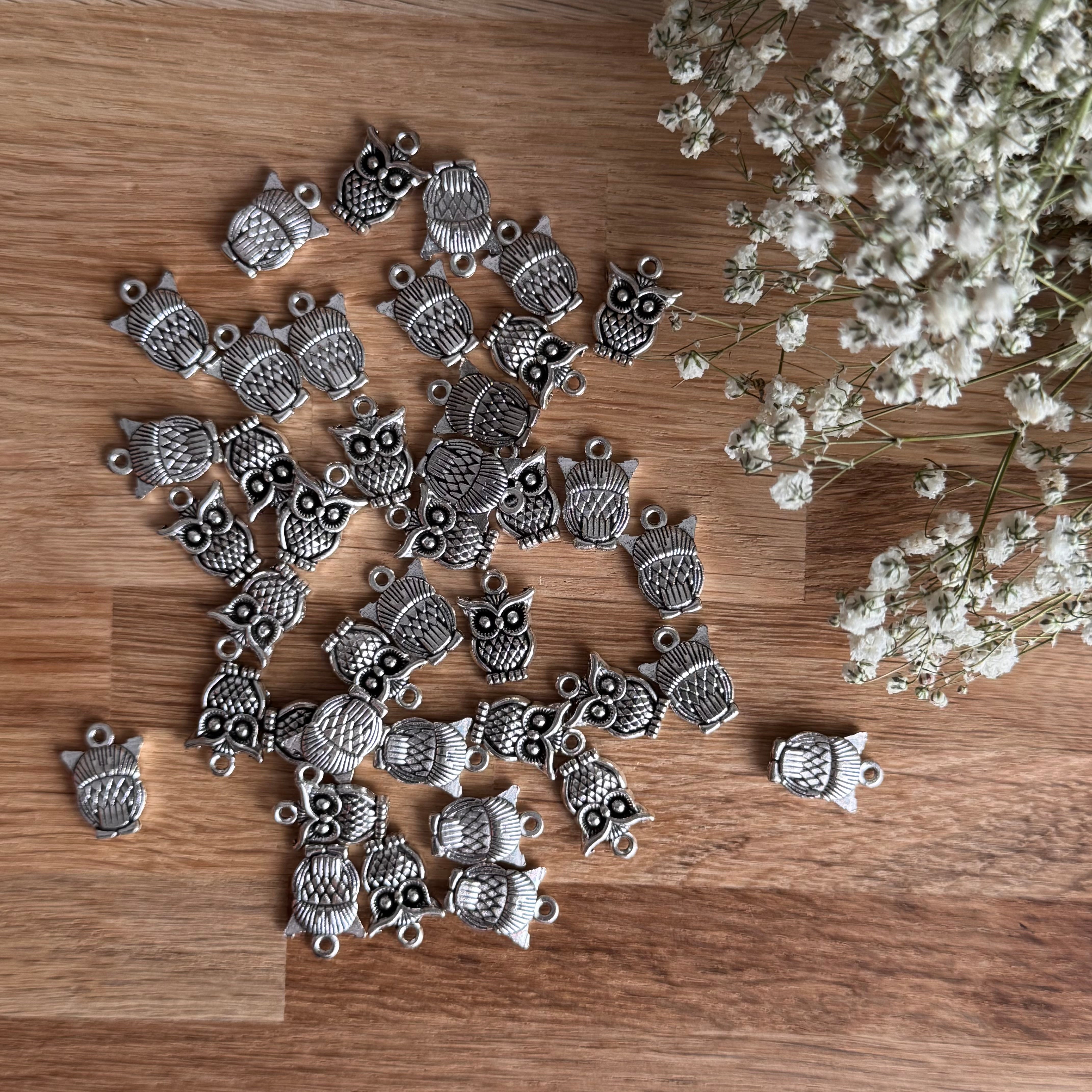 2 x Owl Charms | in Antique Silver | 15 x 10 mm | For Micromacrame, Jewelry & DIYs