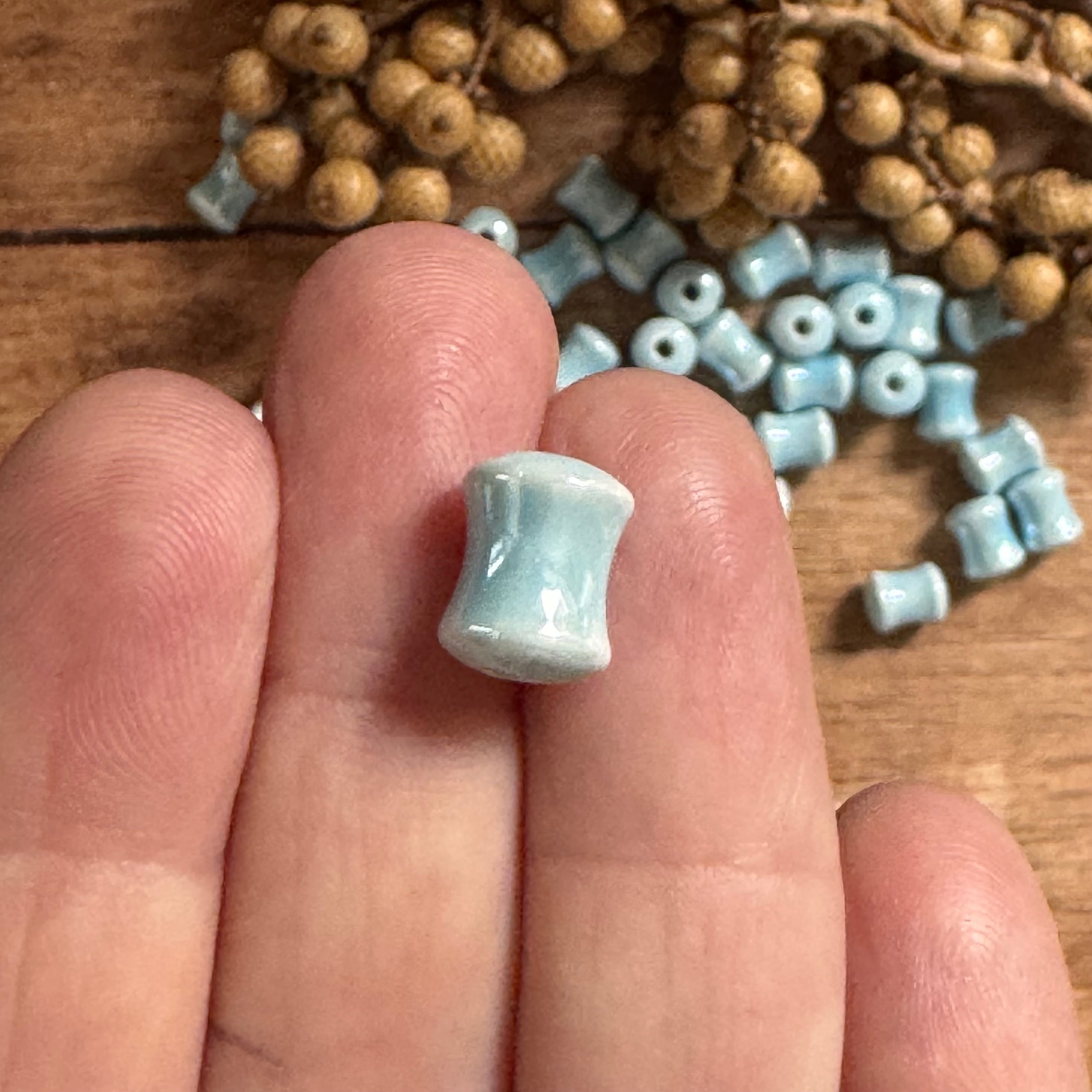 2 x light blue ceramic tube beads, handmade | For micro macrame, jewelry & DIY projects