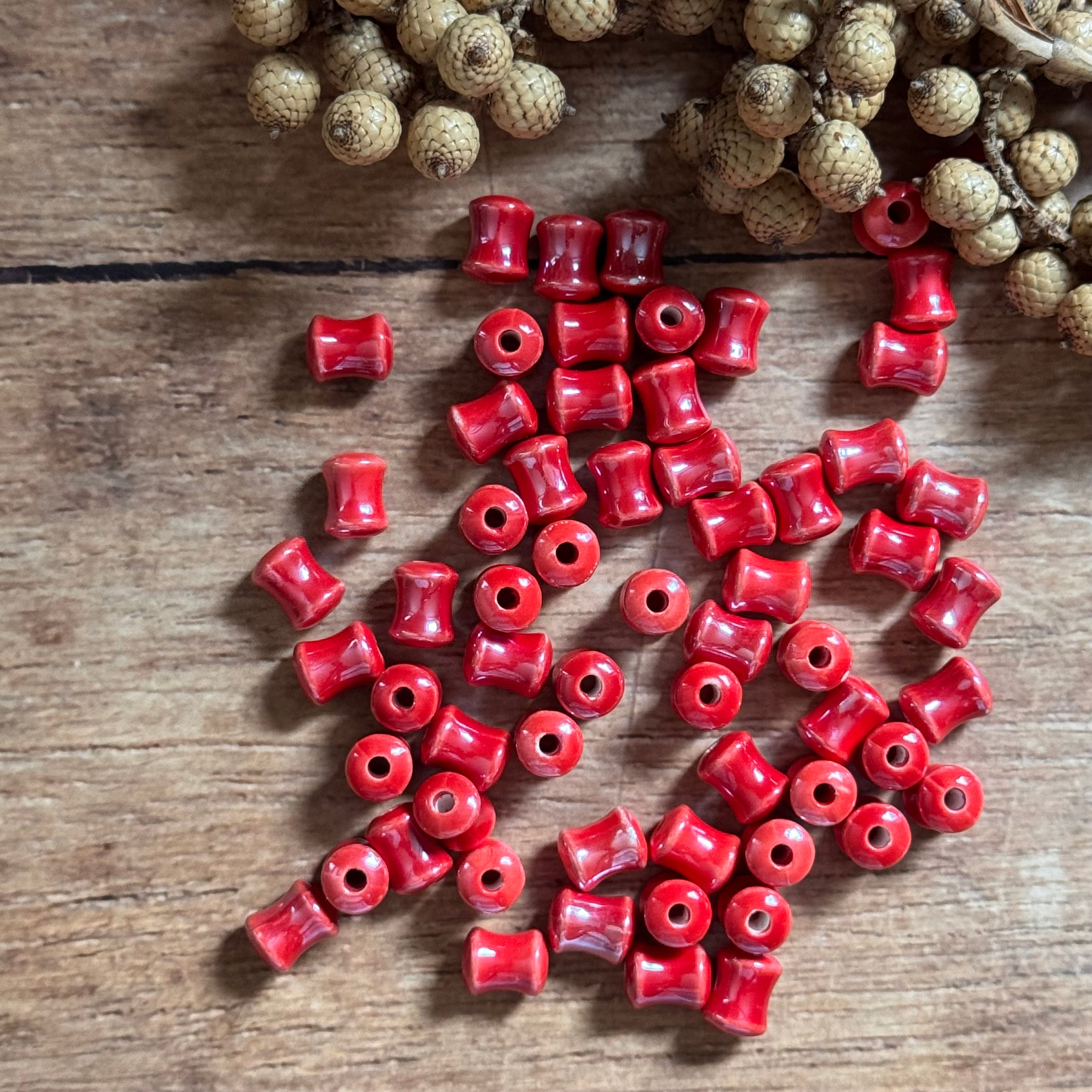2 x red ceramic tube beads, handmade | For micro macrame, jewelry & DIYs