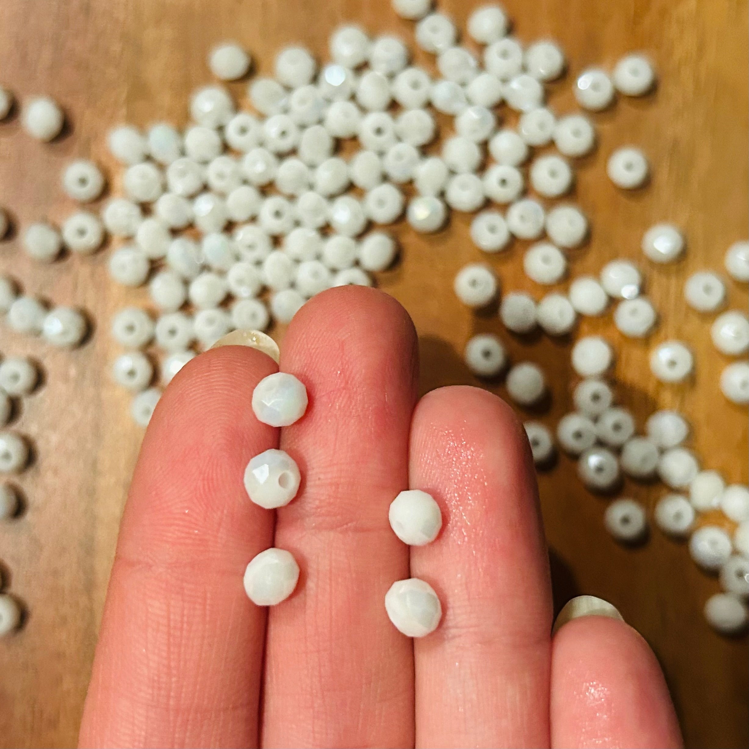 5 x Facettierte Glasperlen | in Weiß | 6 mm | Für Mikromakramee, Schmuck & DIY‘s