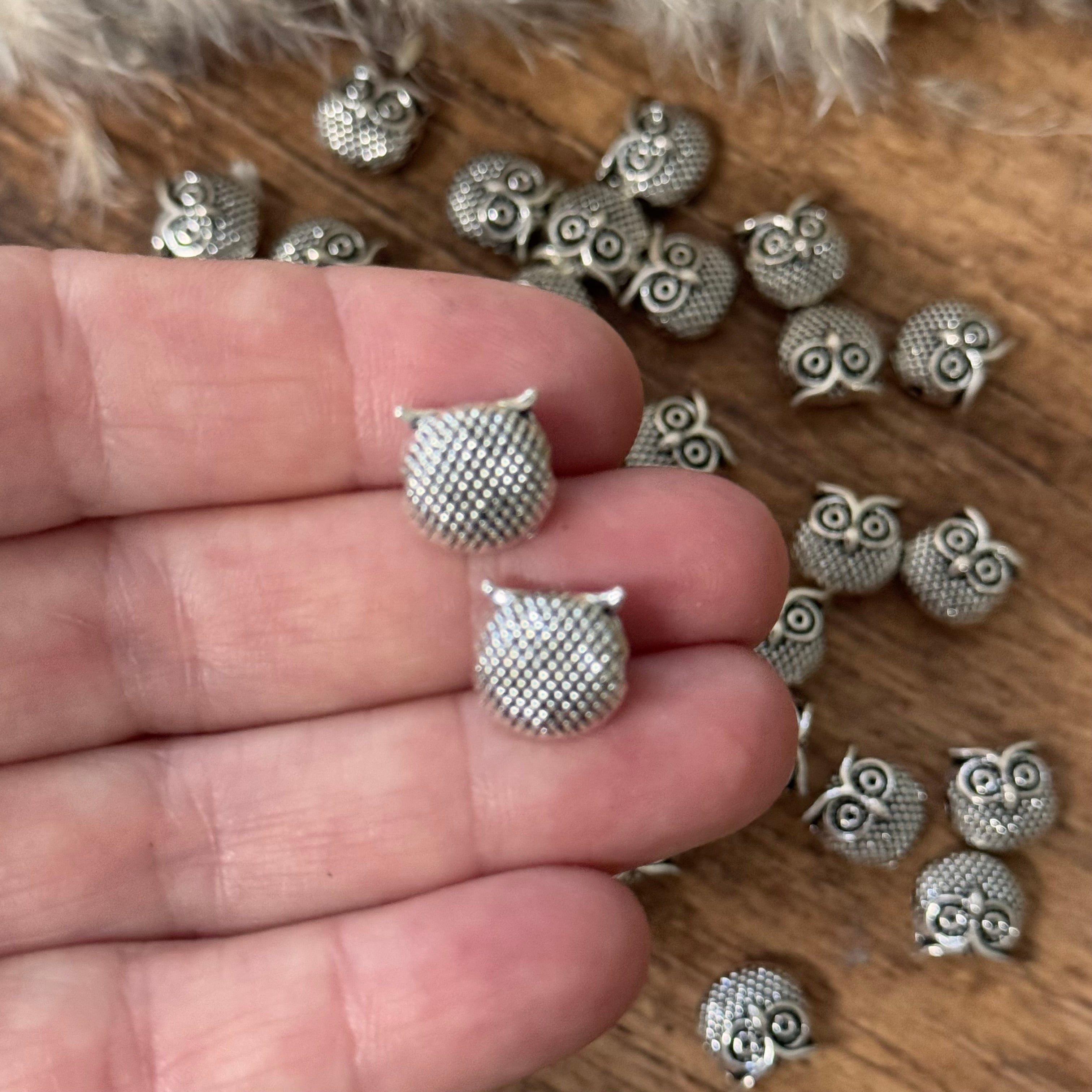 2 x Owl Silver Bead for Jewelry Making Macrame 10 mm