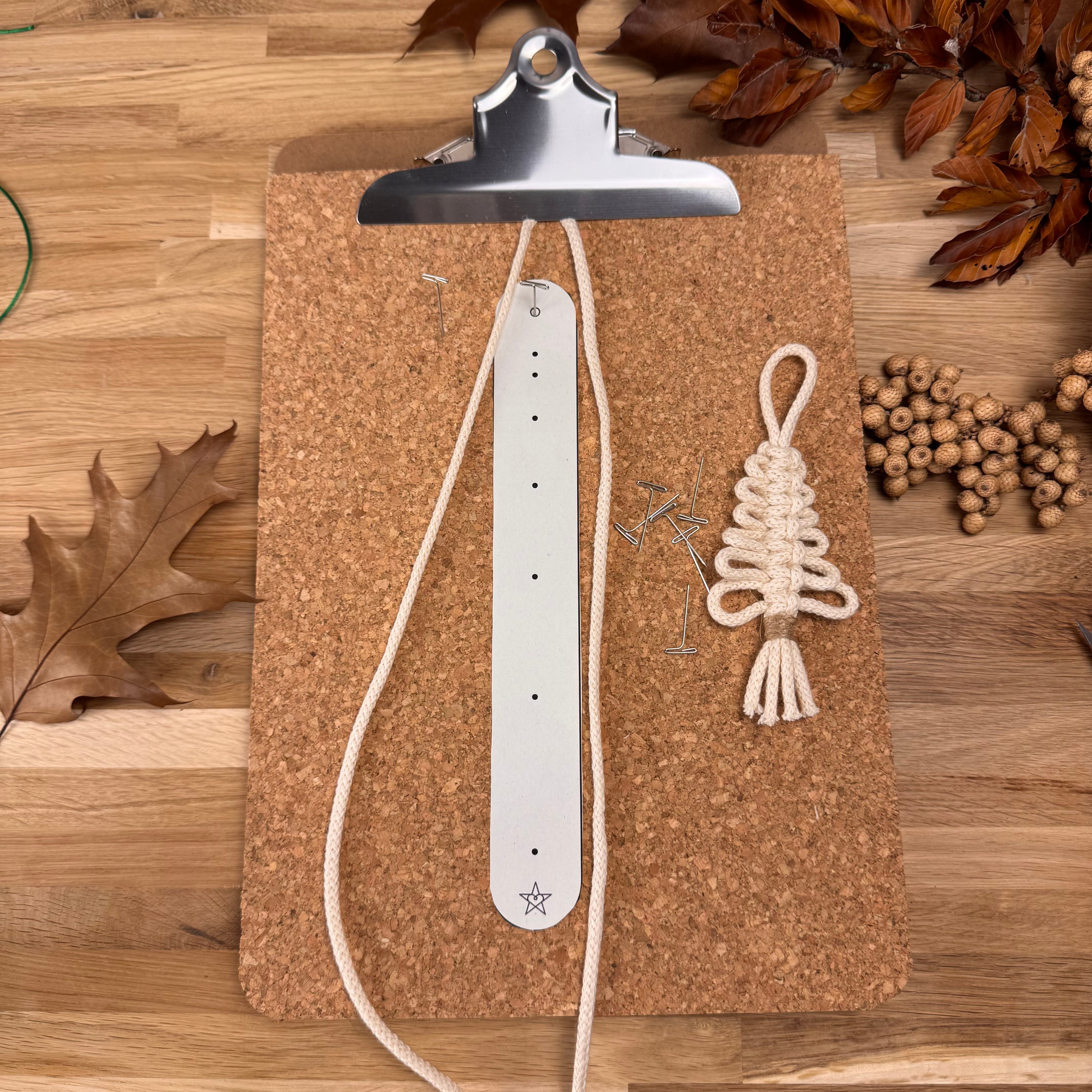 Macrame clipboard covered with cork in three sizes A5, A4 and A3 + Christmas tree template PDF