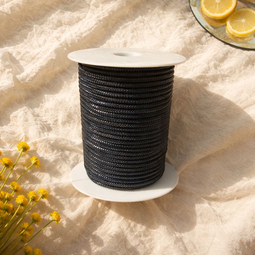 Schwarz/Blau Glitzer / Strass- Schmuckgarn - meterweise | Für Makramee, Schmuck & DIY‘s