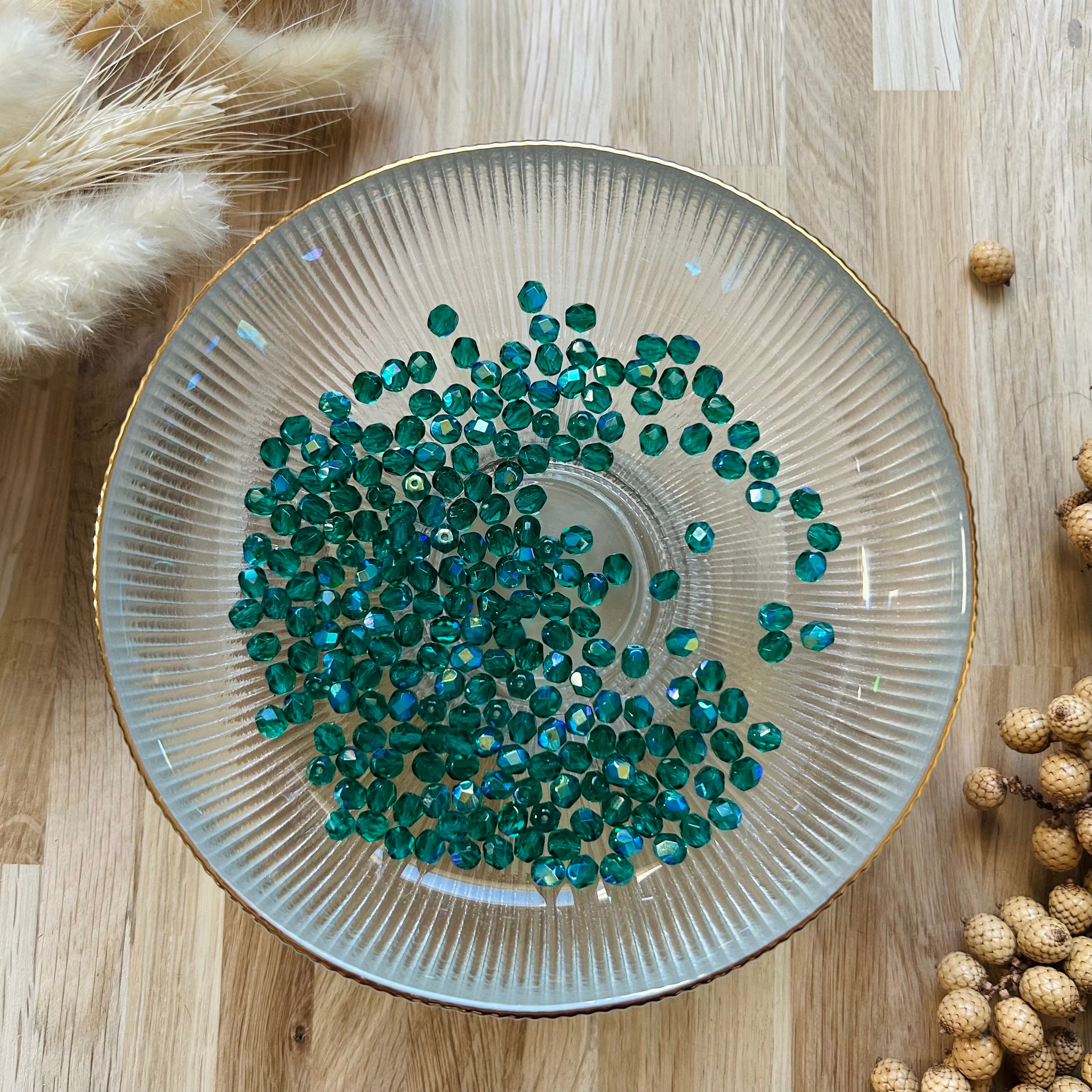 5 x Facettierte Glasperlen| in Smaragd | 6 mm |Für Mikromakramee, Schmuck & DIY‘s