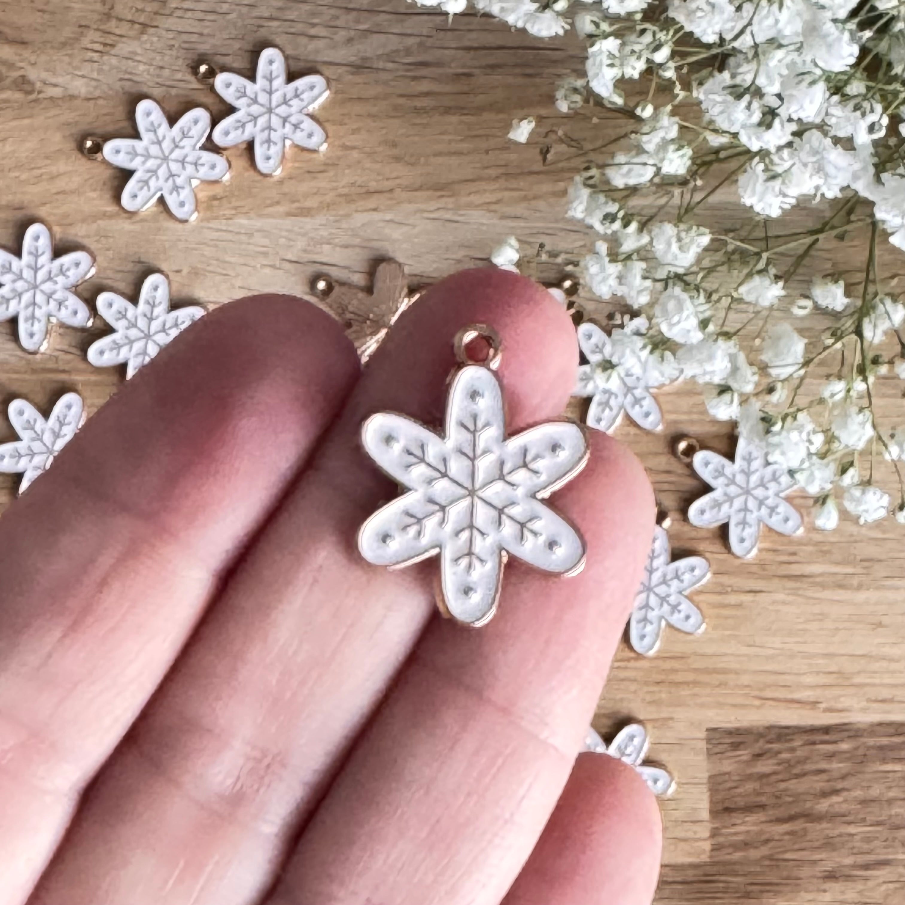 1 x Anhänger Schneeflocke Gold-Weiß für DIY Schmuck - Weihnachten DIY