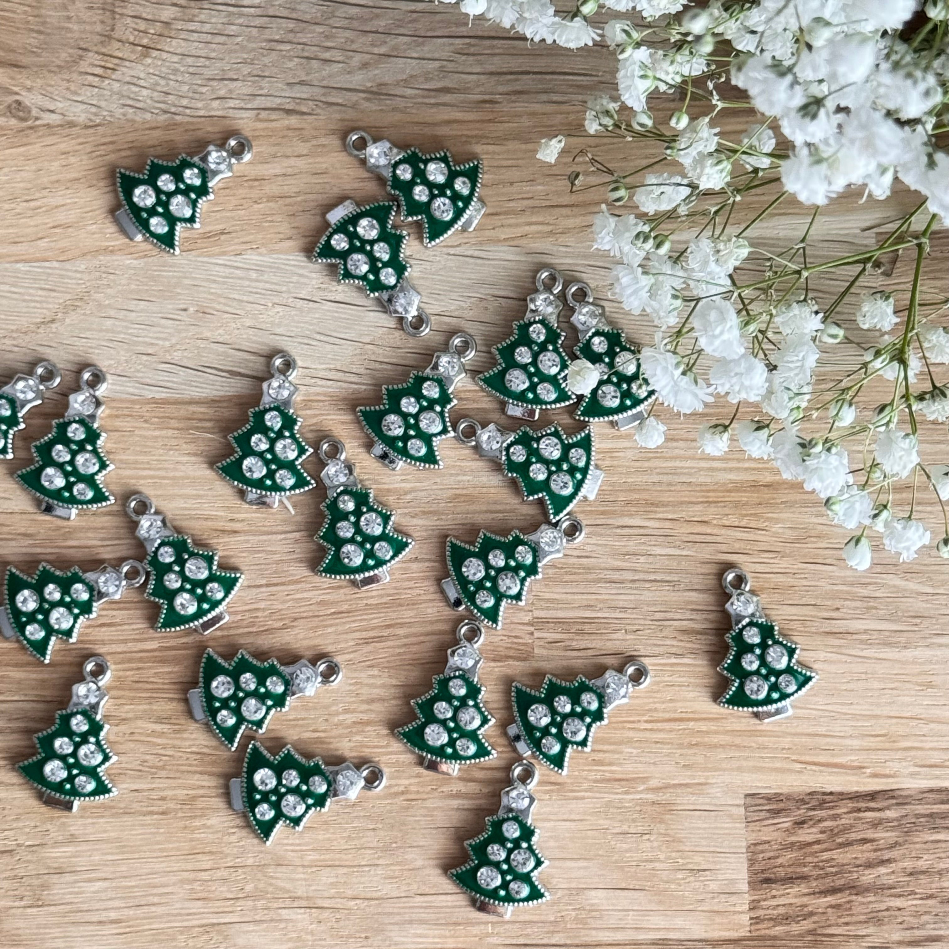 1 x Anhänger Zirkonia Weihnachtsbaum Silber-Grün für DIY Schmuck - Weihnachten