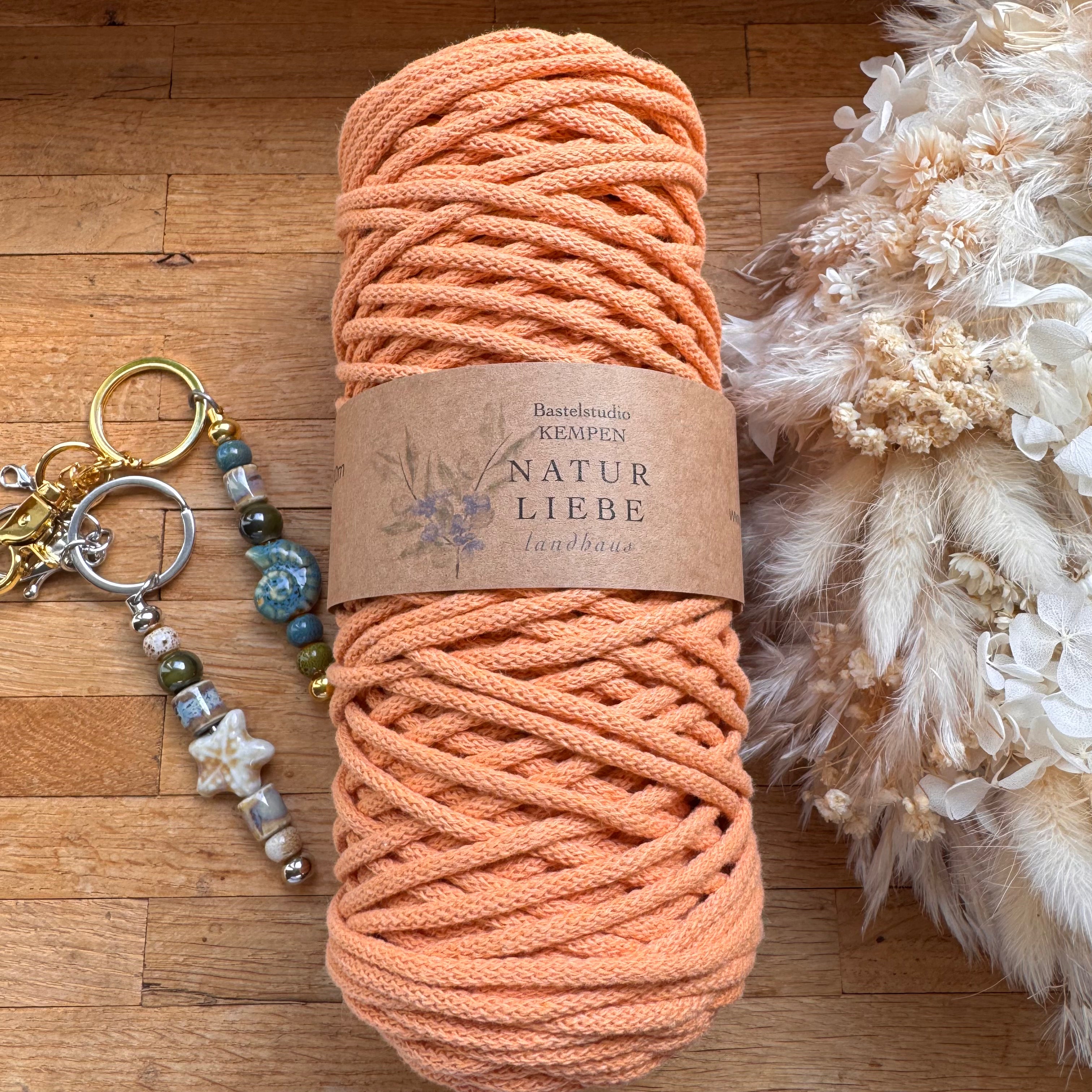 1 x Apricot Geflochtenes Makramee-Garn aus 100% Baumwolle | 3mm x 100 m Länge | Für Makramee, Schmuck & DIY‘s