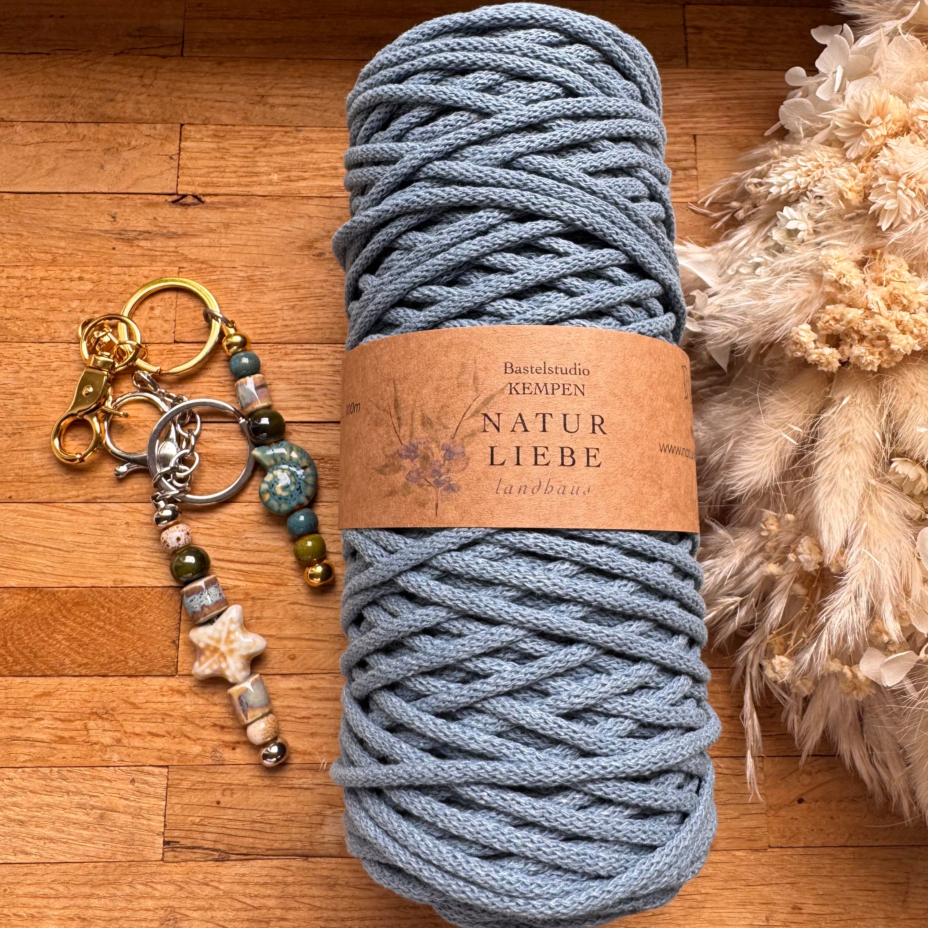 1 x Blau-Grau Geflochtenes Makramee-Garn aus 100% Baumwolle | 3mm x 100 m Länge | Für Makramee, Schmuck & DIY‘s