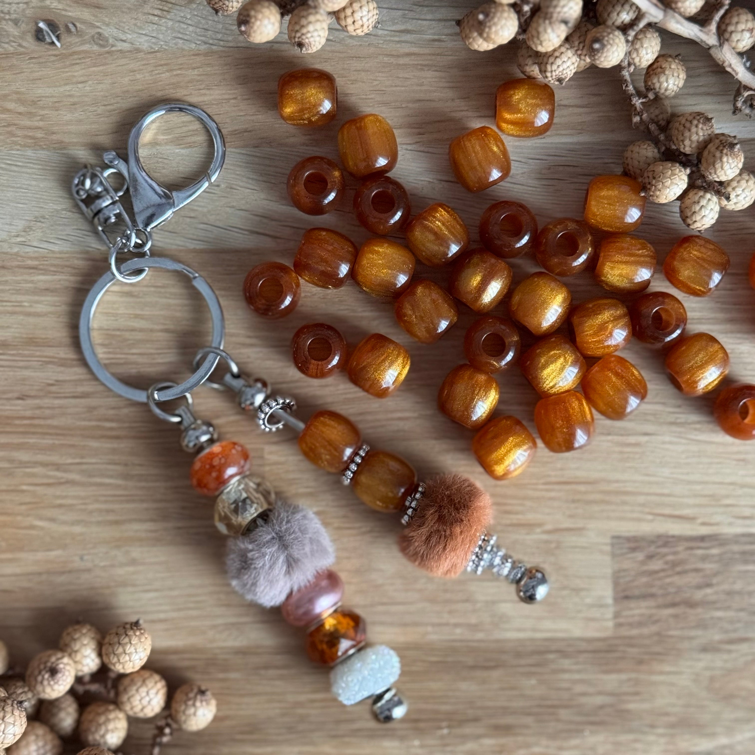 1 x Cognac Harz Fassperle mit großem Loch für DIY Schlüssel- und Taschenanhänger