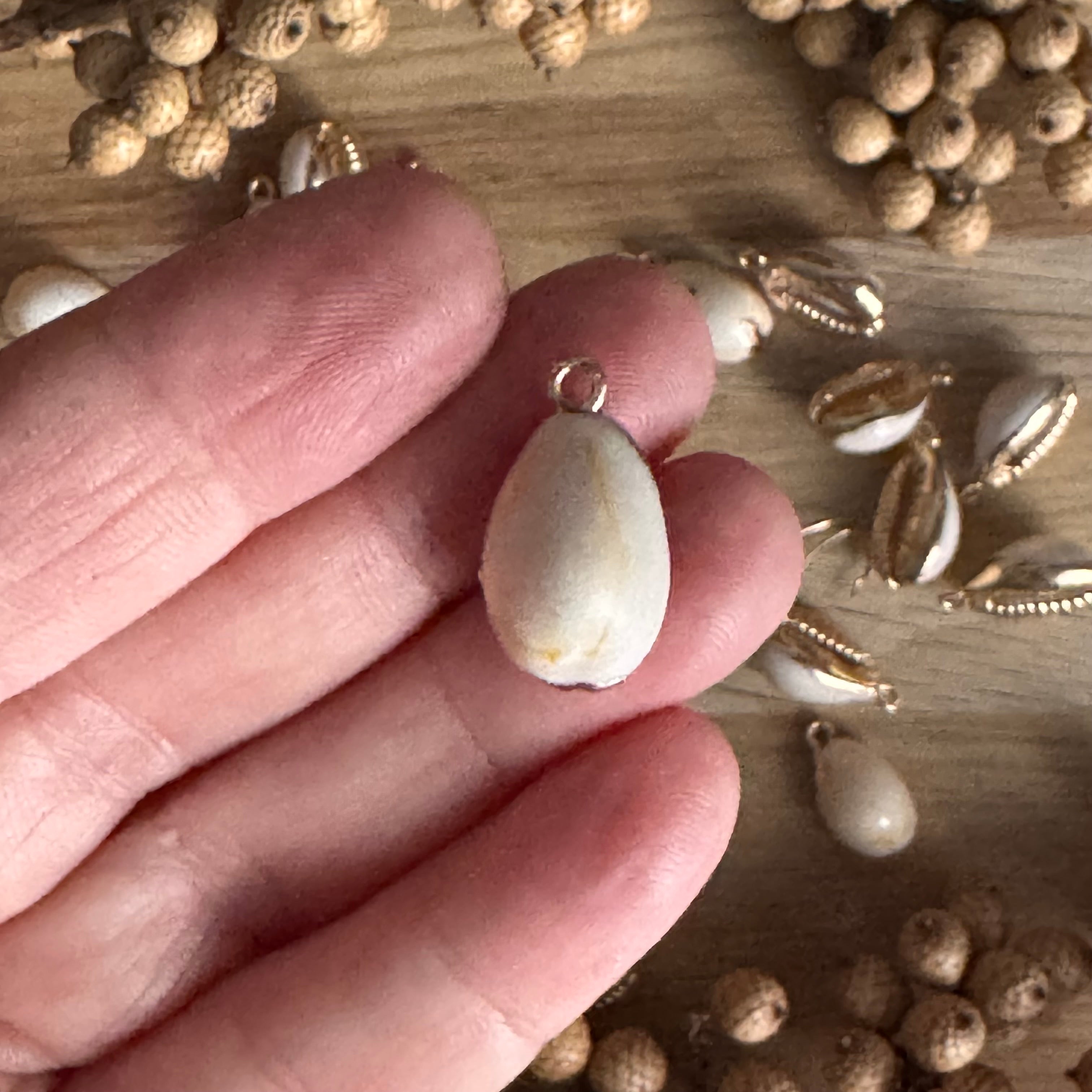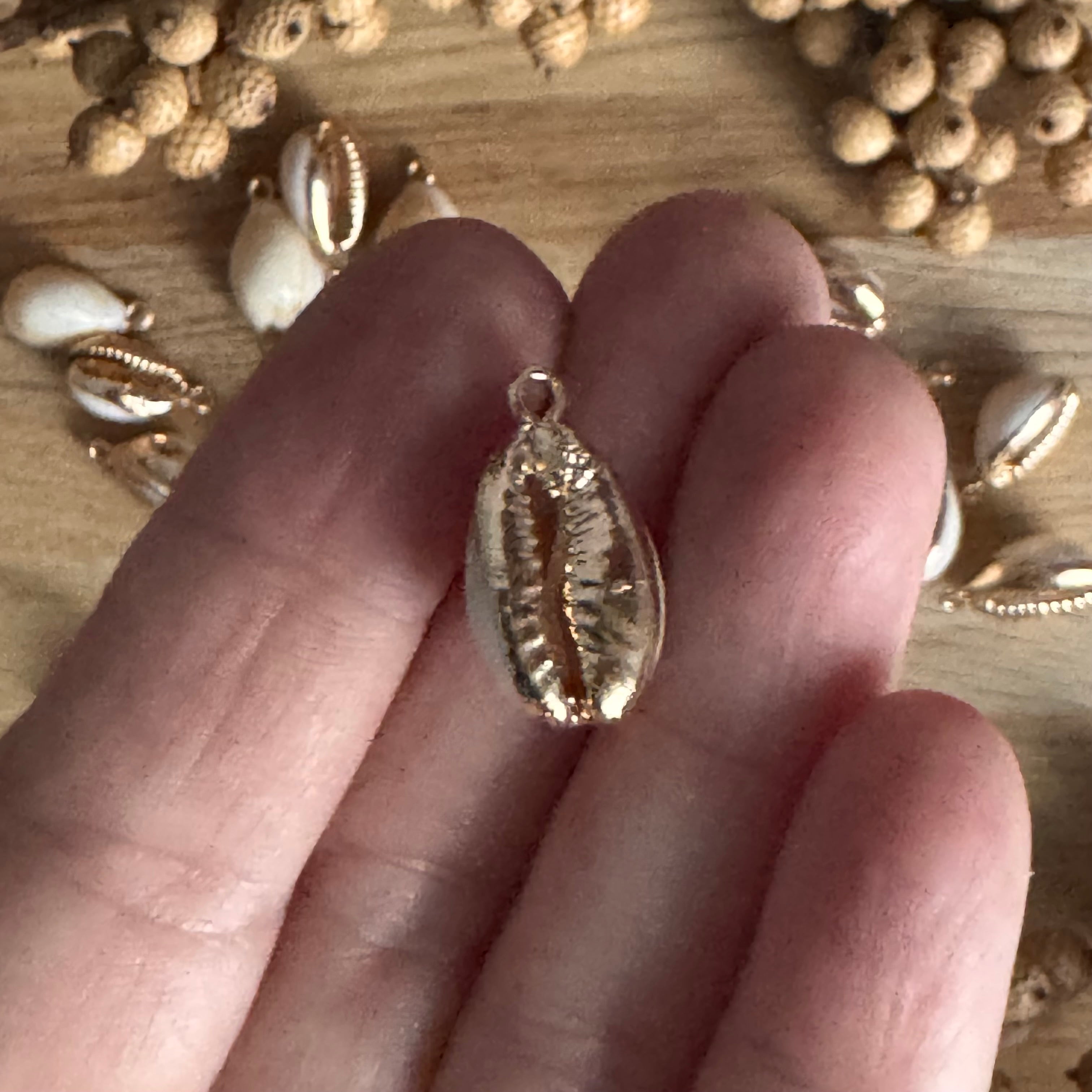 1 x Muschel Anhänger Kauri mit Öse | in Beige-Gold | Für Schmuck & DIY‘s