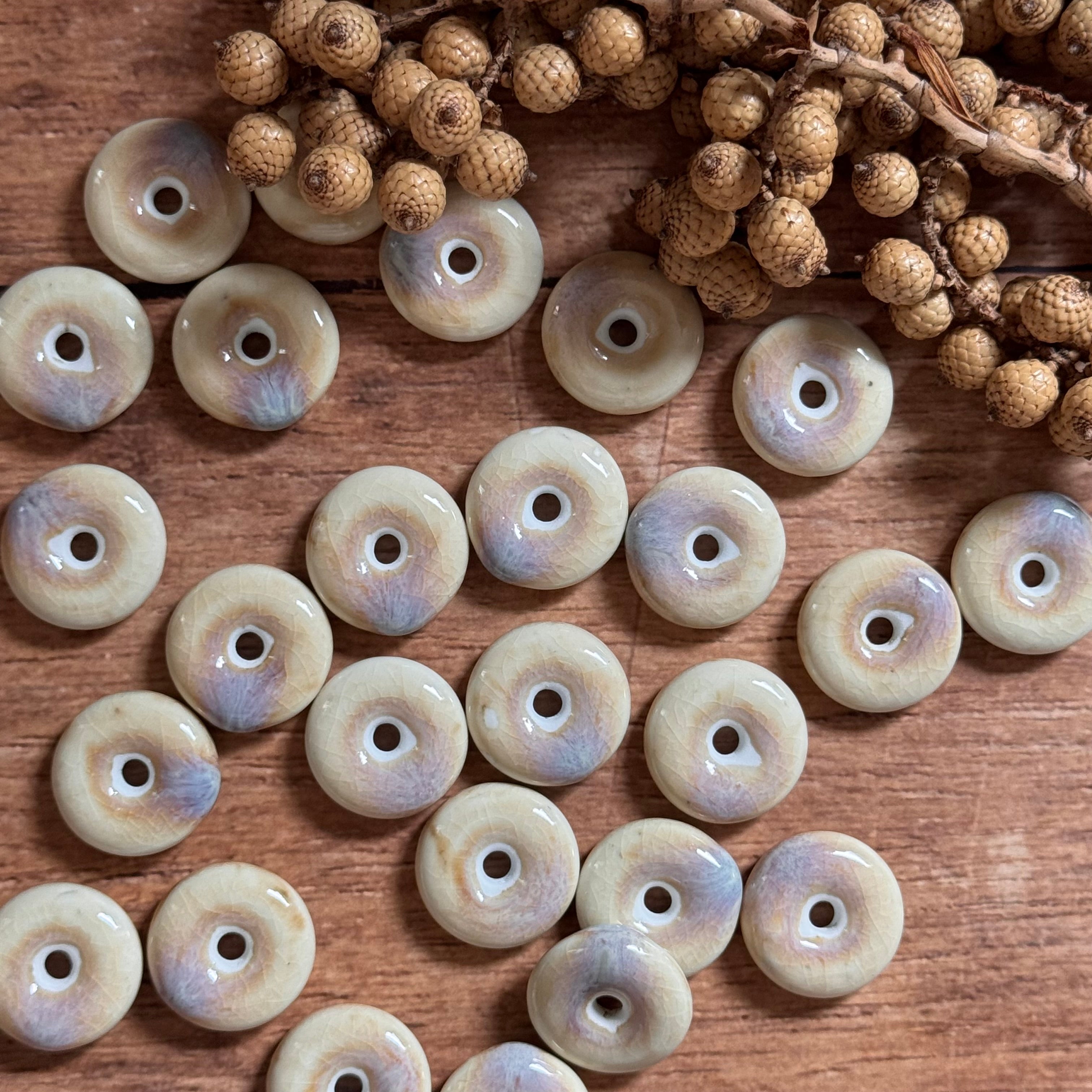 1 x Flache Perle Donut aus Keramik | Beige | Für Mikromakramee, Schmuck & DIY‘s