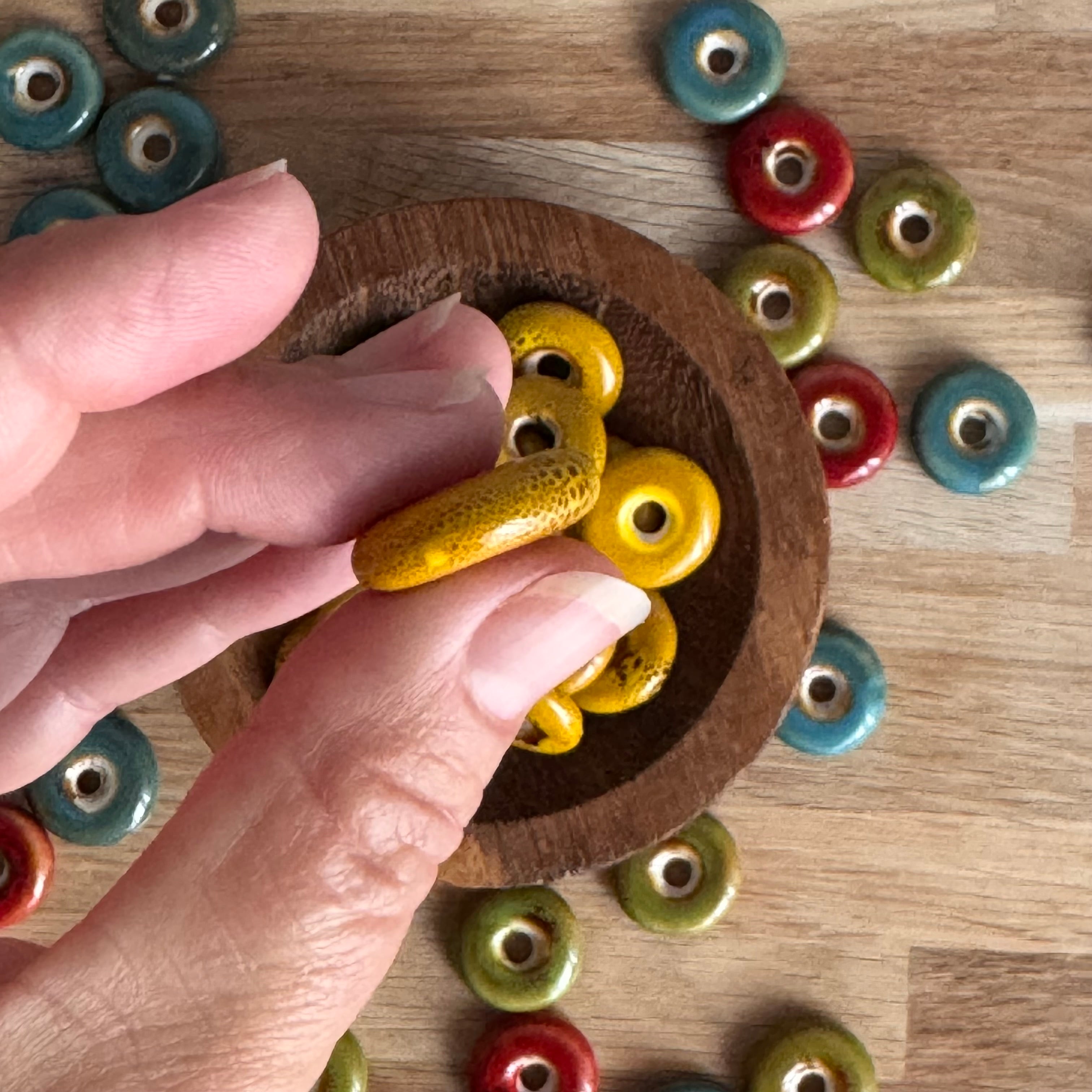 1 x Flache Perle Donut aus Keramik | in Sonnengelb | Für Mikromakramee, Schmuck & DIY‘s