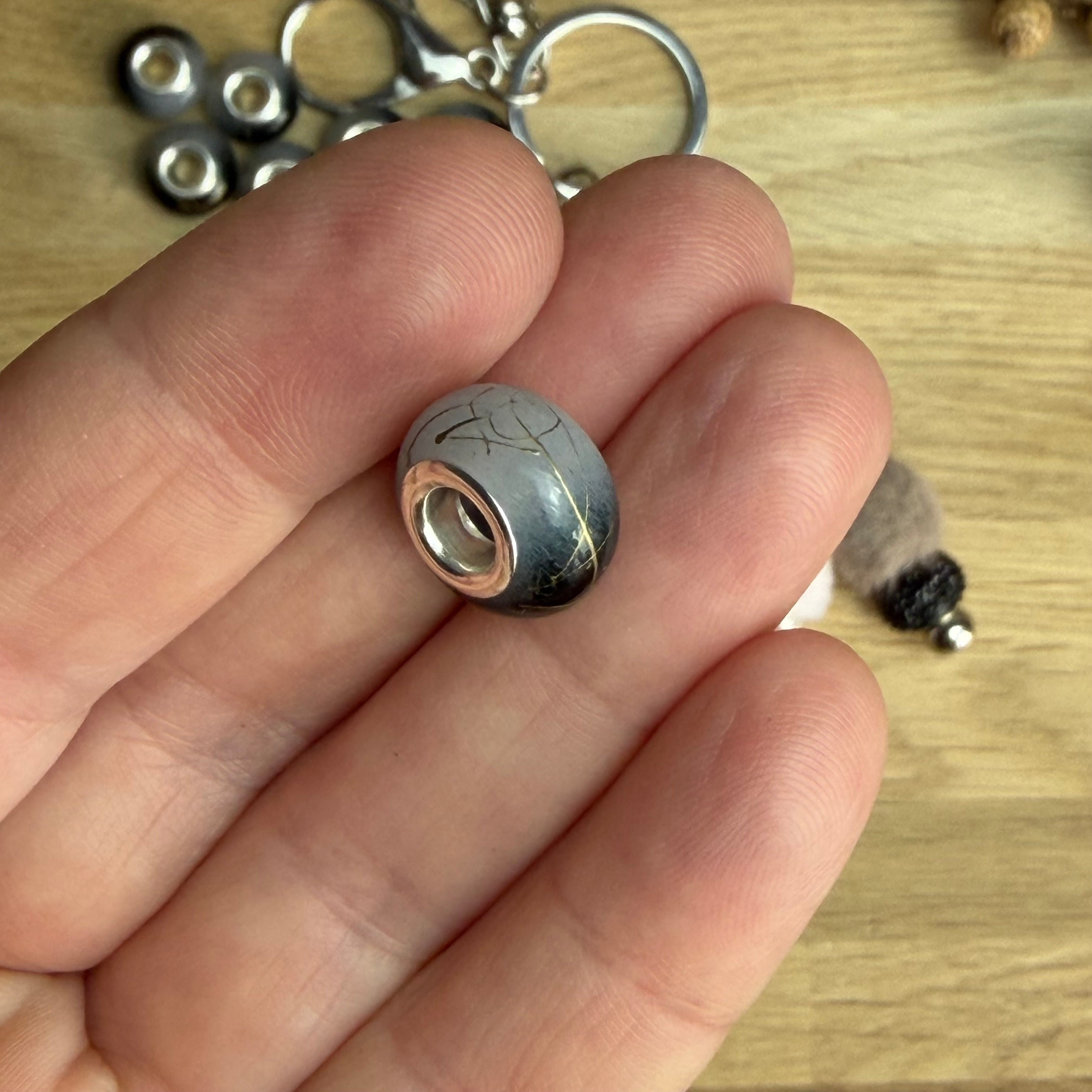 1 x Grau/Schwarz/Goldene Acryl Spacerperle mit großem Loch für DIY Schlüssel- und Taschenanhänger