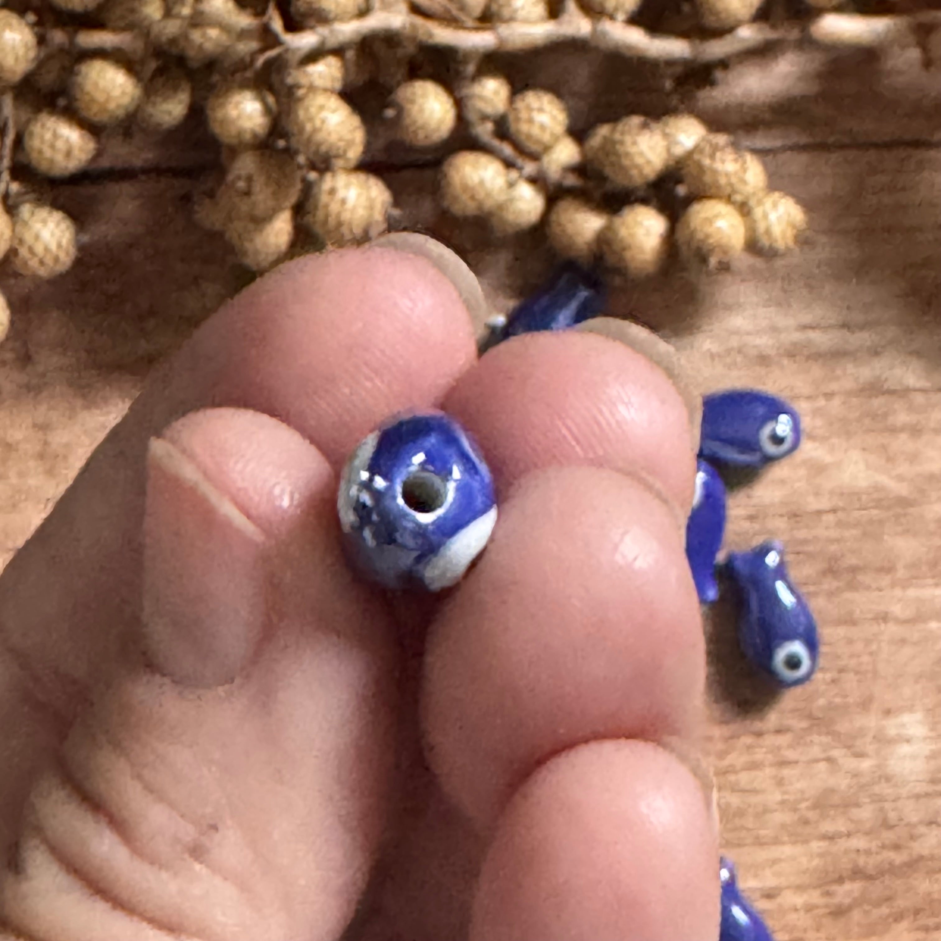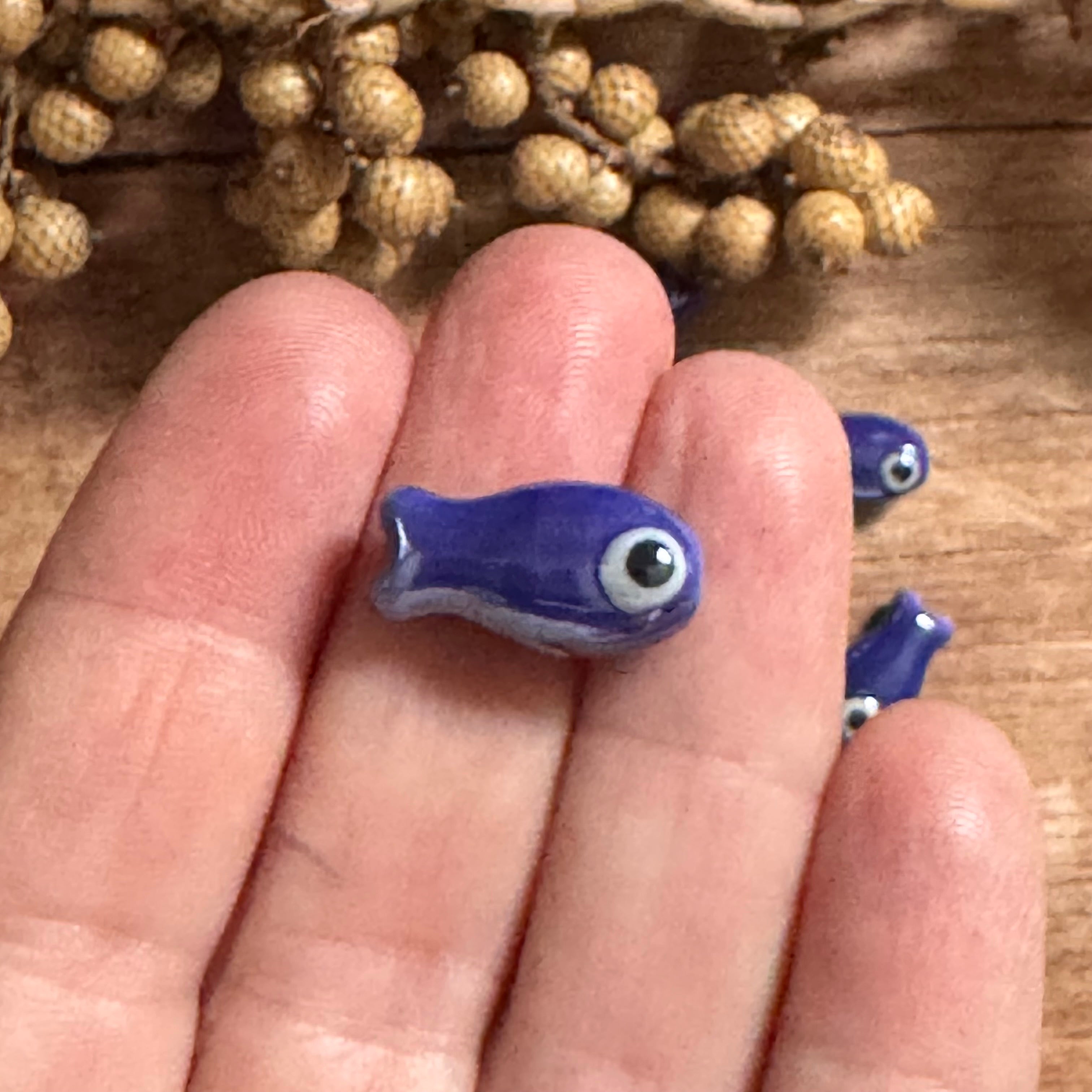 1 x Hellblau & Dunkelblau Fisch Perle aus Keramik | 19 x 10 mm | Für Mikromakramee, Schmuck & DIY‘s