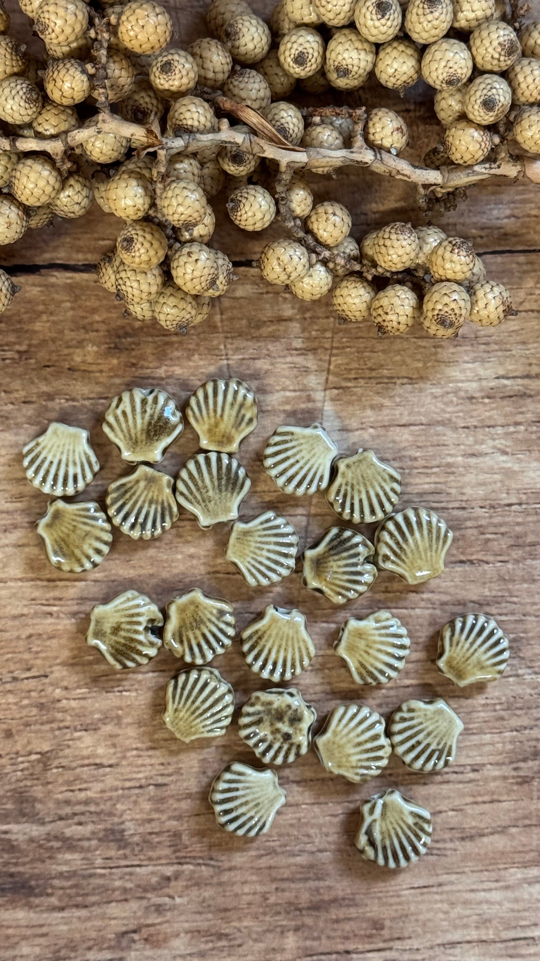 1 x Hellbraun Handgefertigte Muschelperle aus Keramik | Für Mikromakramee, Schmuck & DIY‘s
