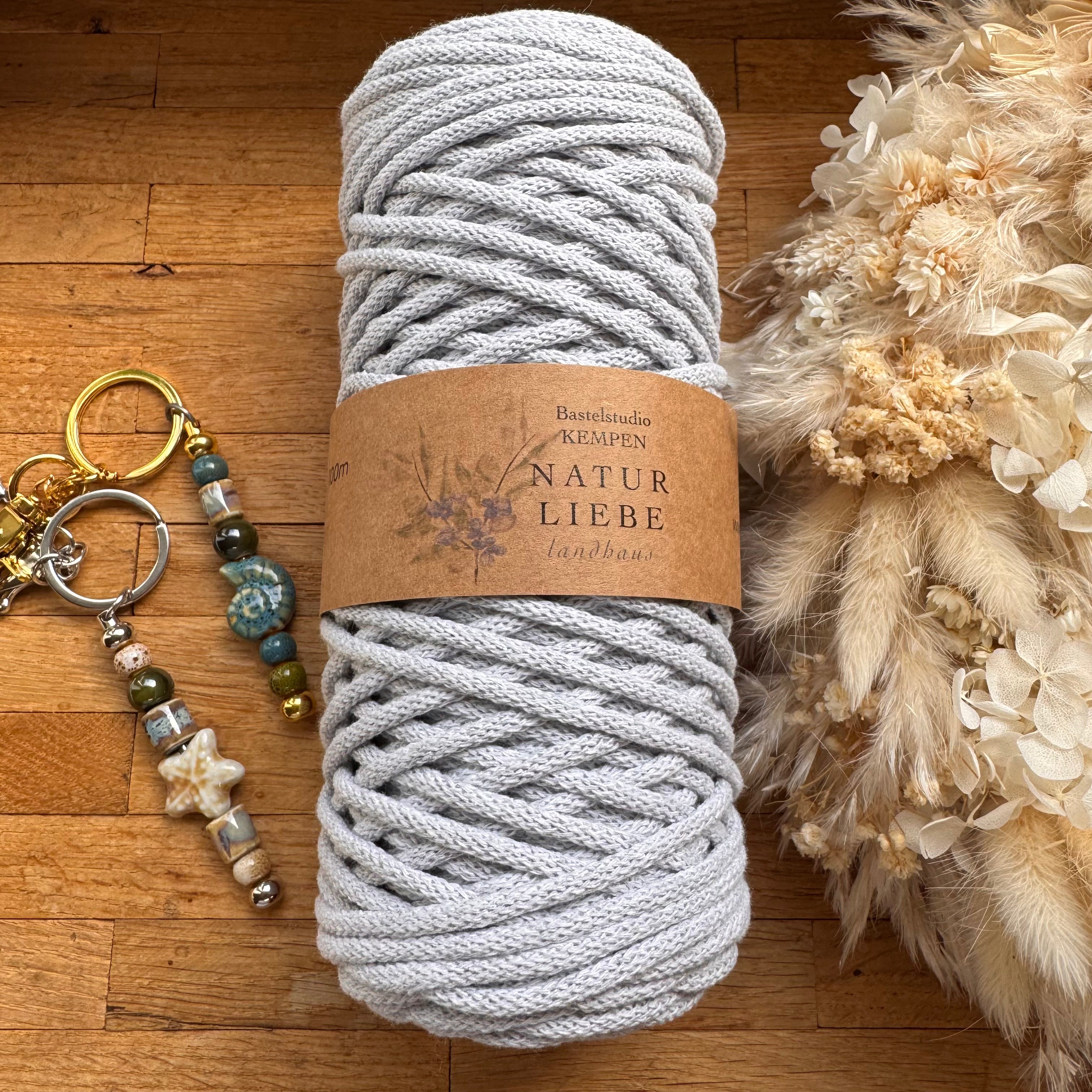 1 x Hellgrau Geflochtenes Makramee-Garn aus 100% Baumwolle | 3mm x 100 m Länge | Für Makramee, Schmuck & DIY‘s