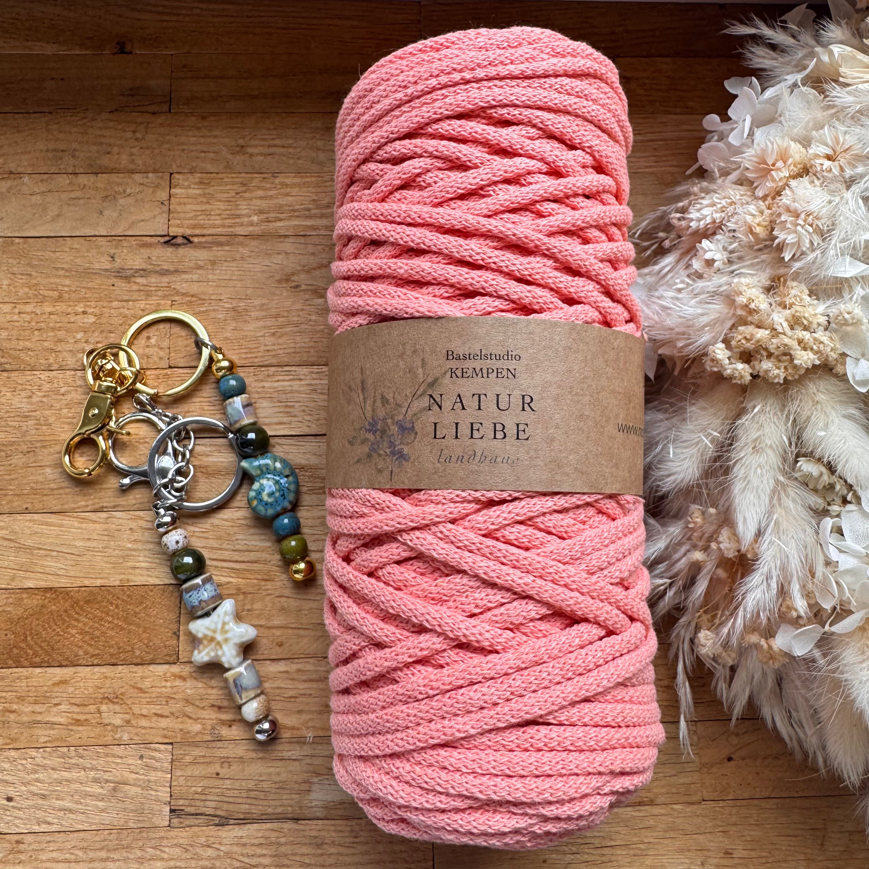1 x Lachs Geflochtenes Makramee-Garn aus 100% Baumwolle | 3mm x 100 m Länge | Für Makramee, Schmuck & DIY‘s