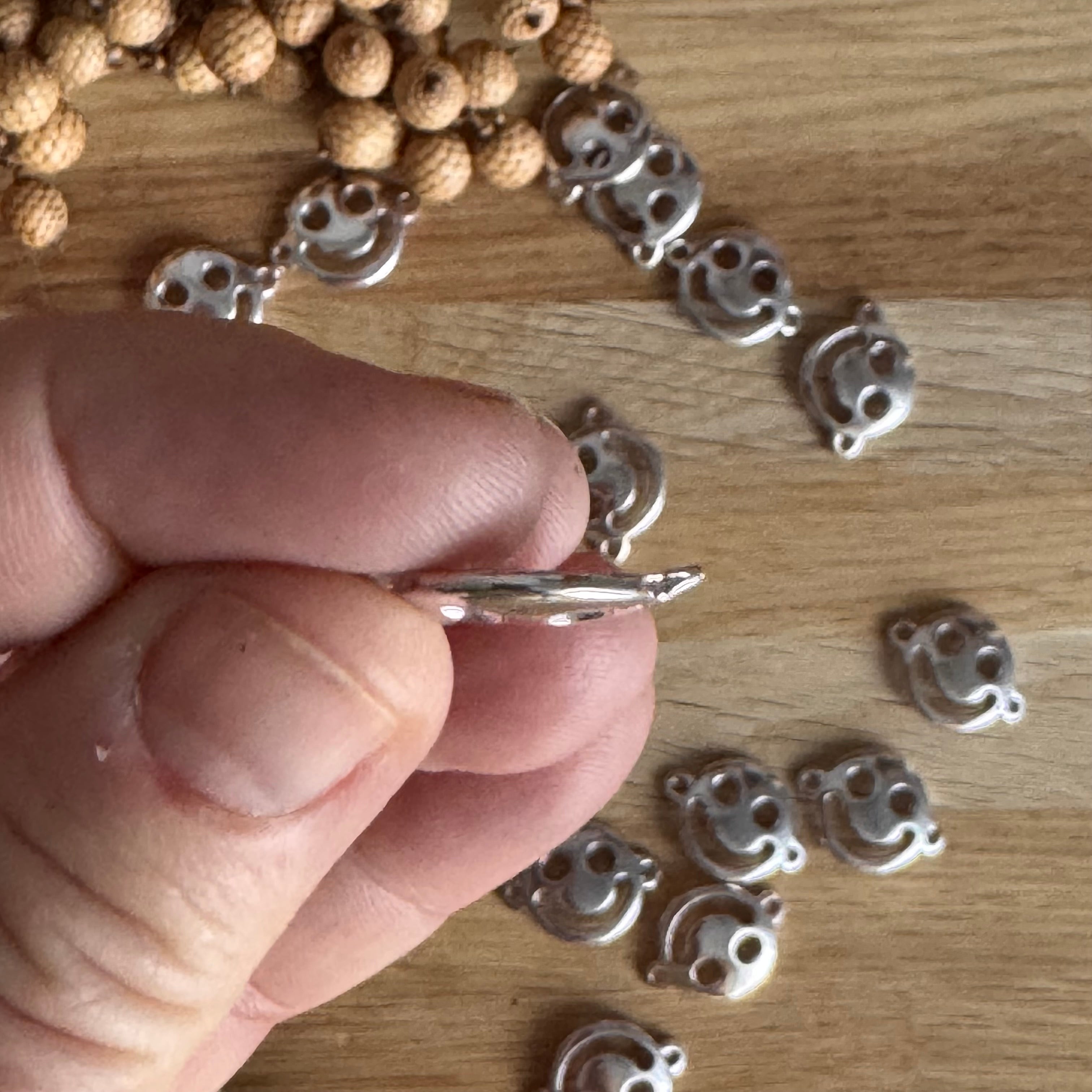1 x Perle DQ SMILEY Zamak versilbert | ø 18 mm | Für Makramee, Schmuck & DIY‘s
