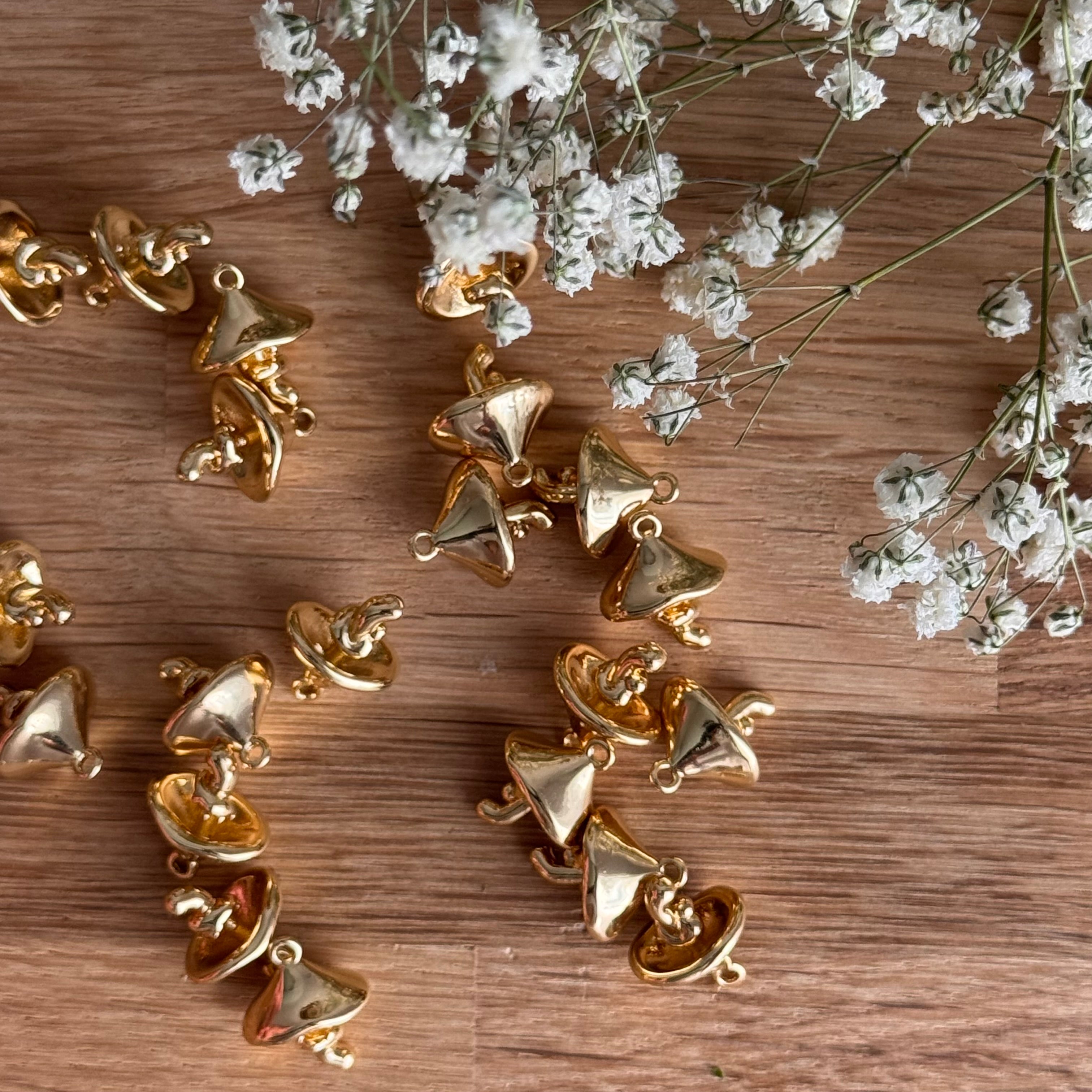 1 x Pilzanhänger 14 K vergoldet | 15 x 10 mm | Für Mikromakramee, Schmuck & DIY‘s