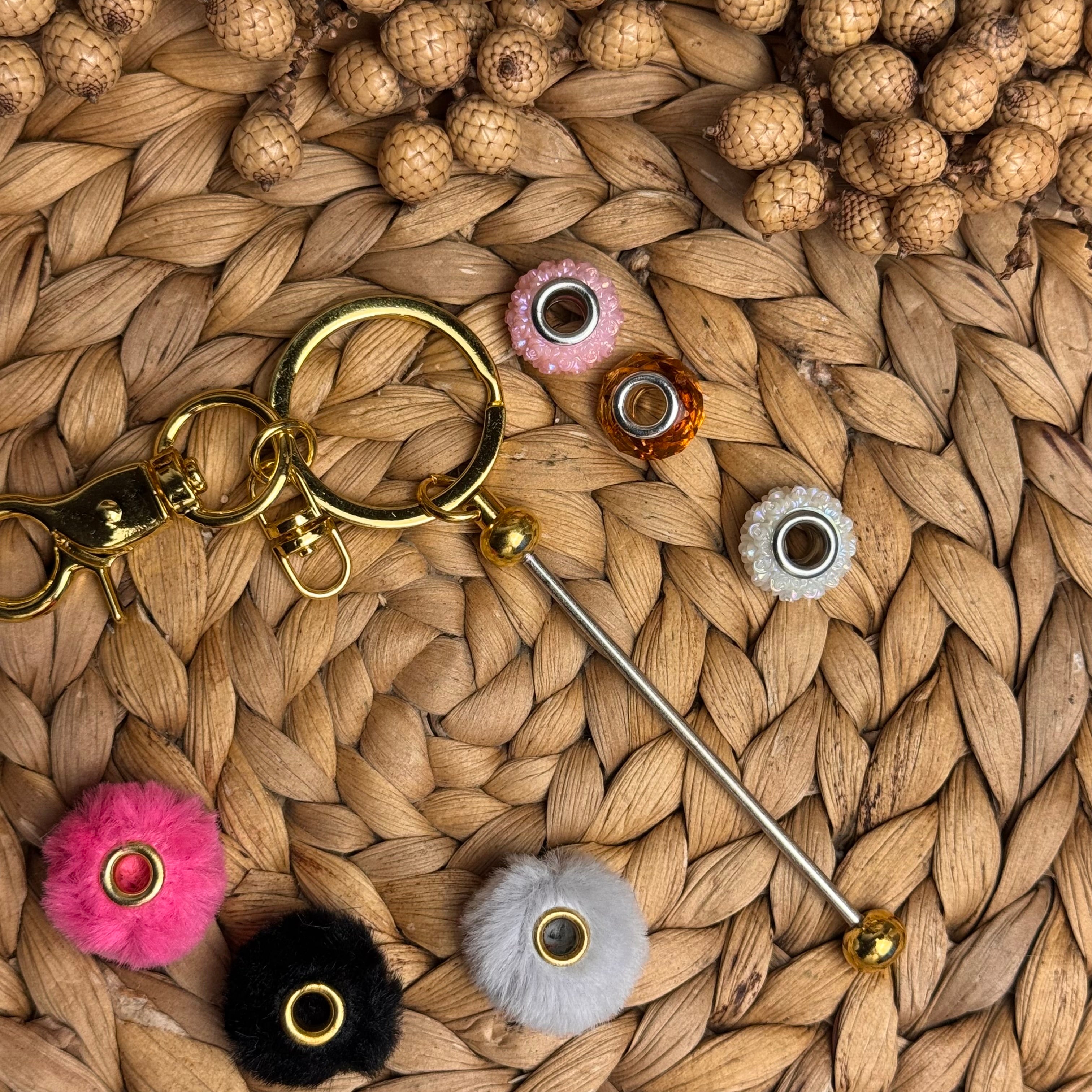 brightstars design 1 x Bernstein facettierte Acryl Spacerperle mit großem Loch für DIY Schlüssel- und Taschenanhänger