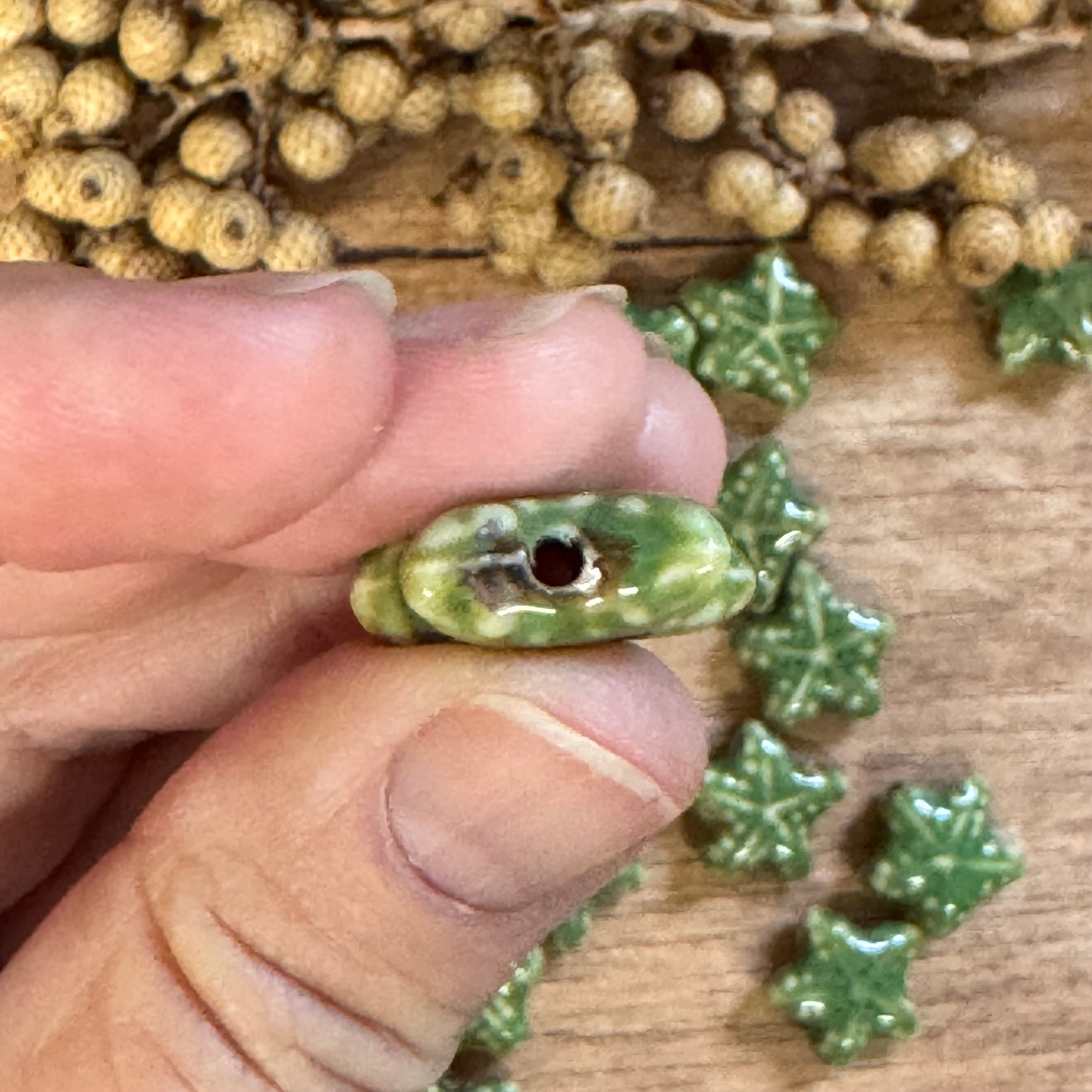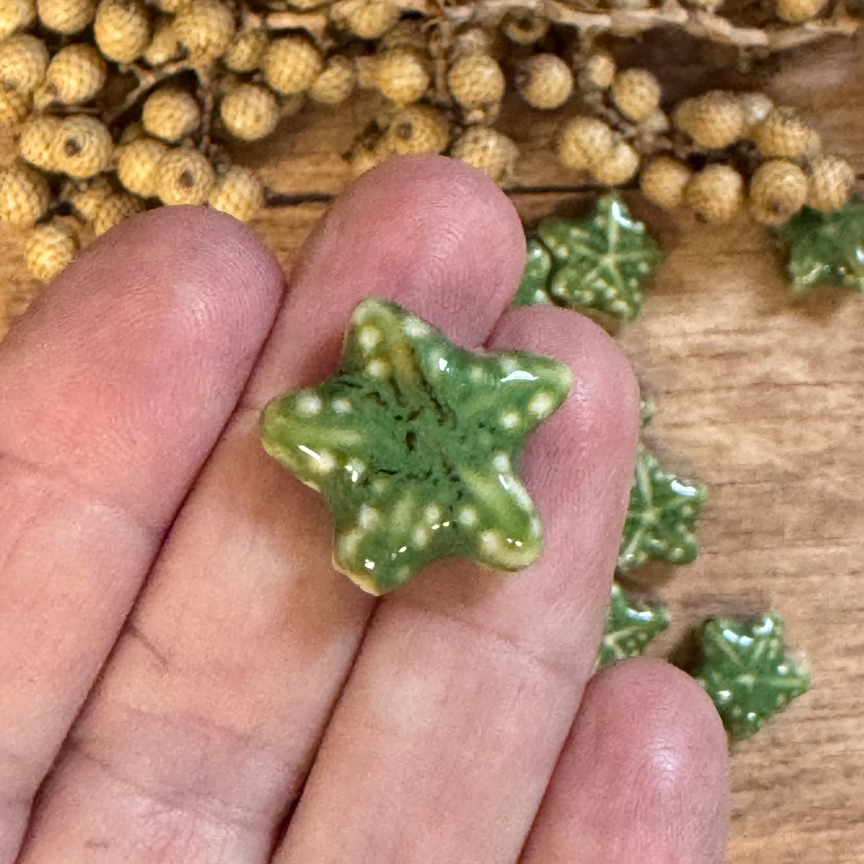 1 x Seesternperle aus Keramik | in Grün | Für Mikromakramee, Schmuck & DIY‘s