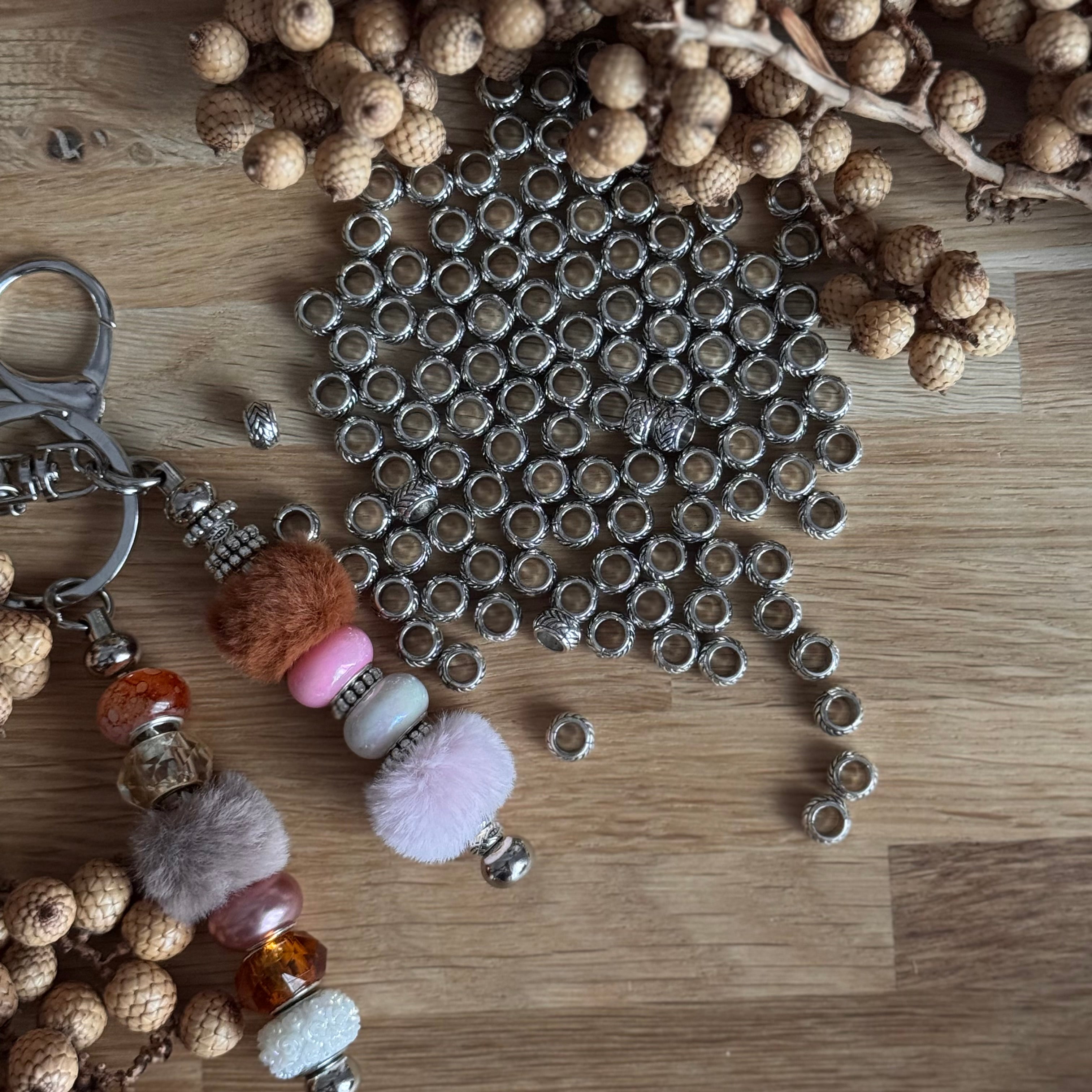 1 x Silberne Perle Ornament mit großem Loch für DIY Schlüssel- und Taschenanhänger