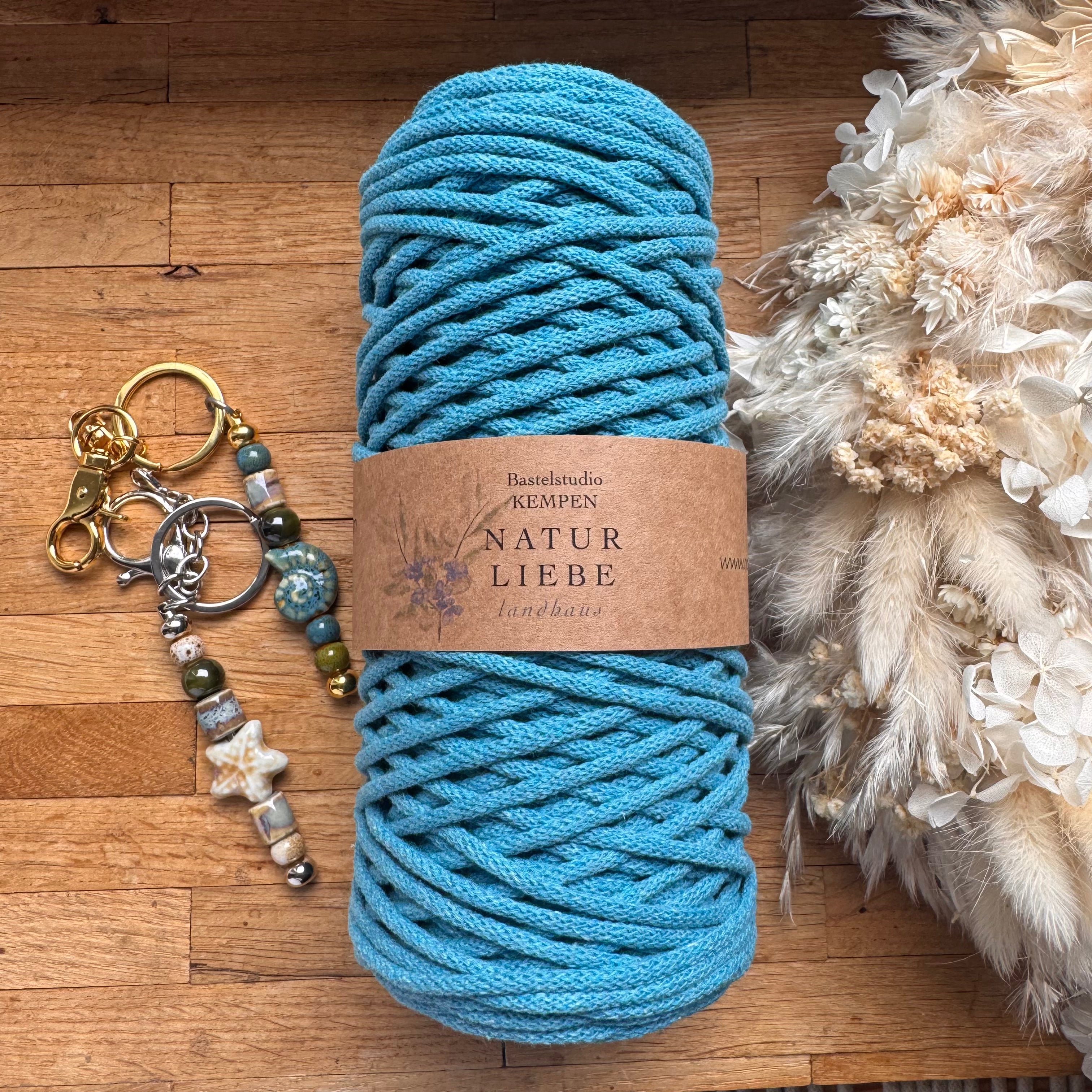 1 x Türkis Geflochtenes Makramee-Garn aus 100% Baumwolle | 3mm x 100 m Länge | Für Makramee, Schmuck & DIY‘s