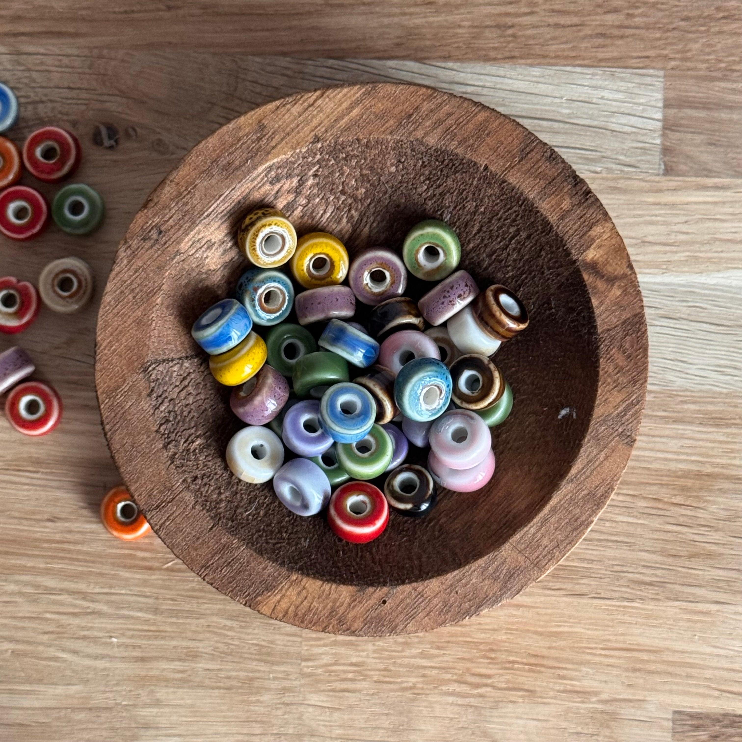 10 x Disc-Perlen aus Keramik | bunt | Für Mikromakramee, Schmuck & DIY‘s
