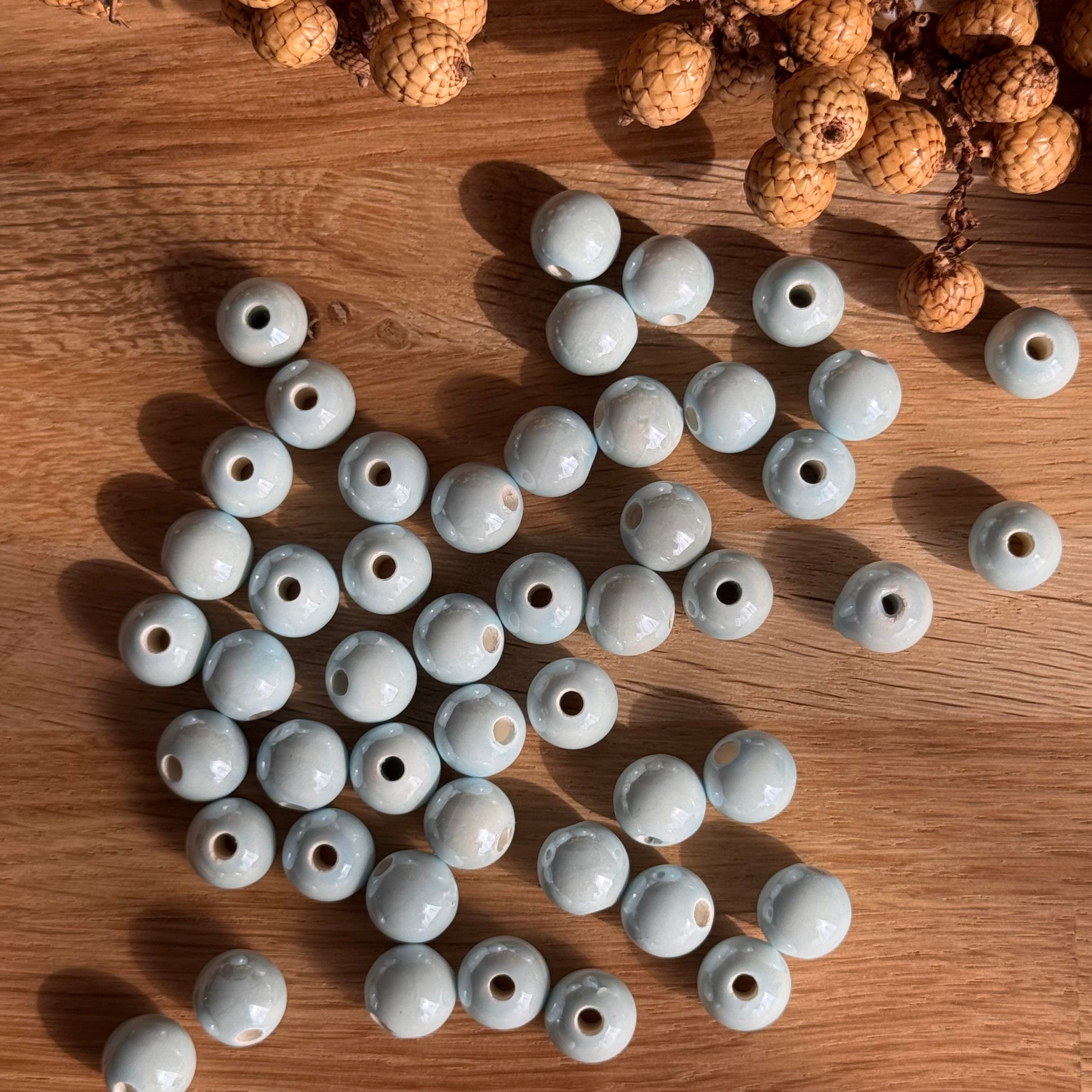 5 x runde Perlen aus Keramik | in Eisblau | Für Mikromakramee, Schmuck & DIY‘s