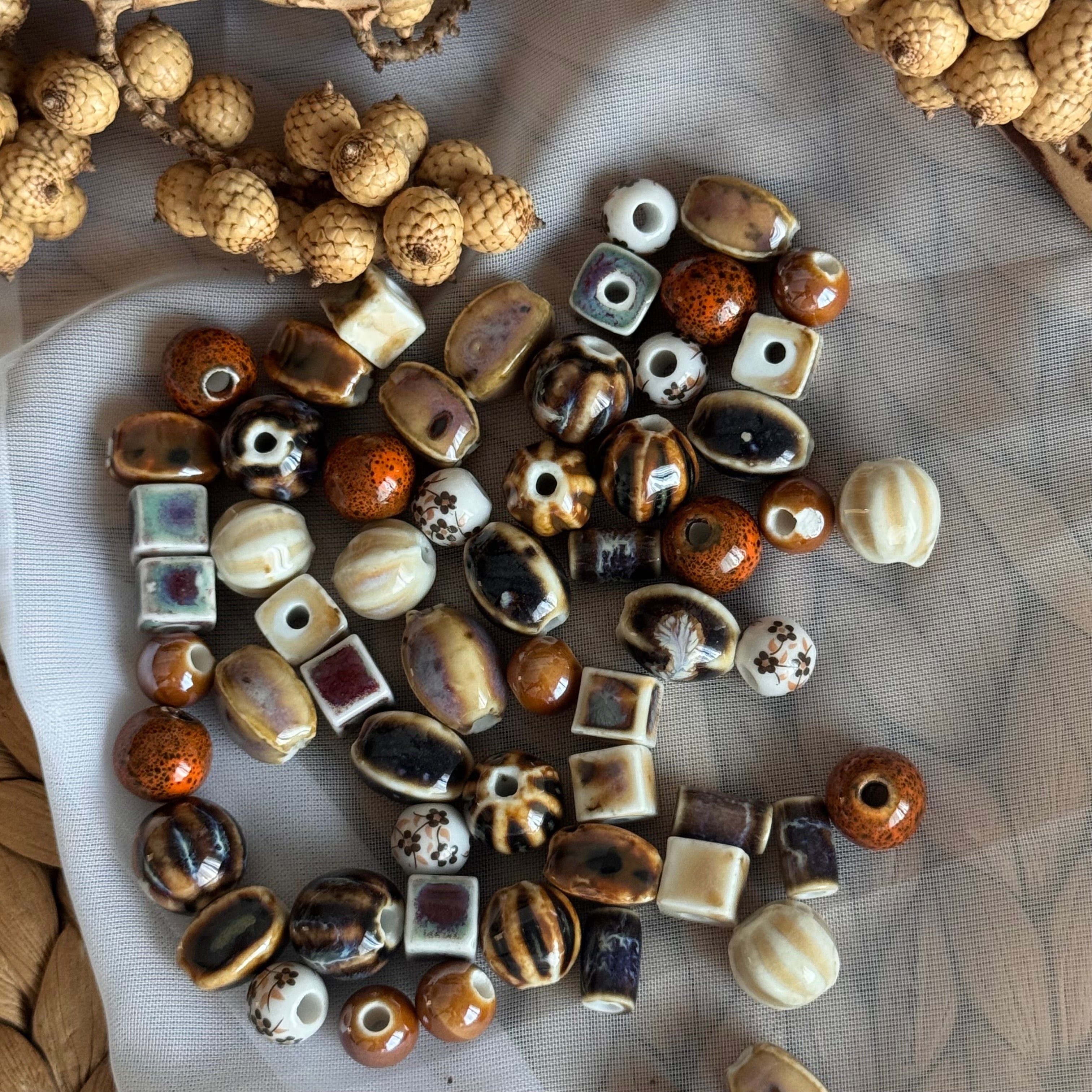 10 x Keramikperlen Mix bunt glasiert | Für Mikromakramee, Schmuck & DIY‘s