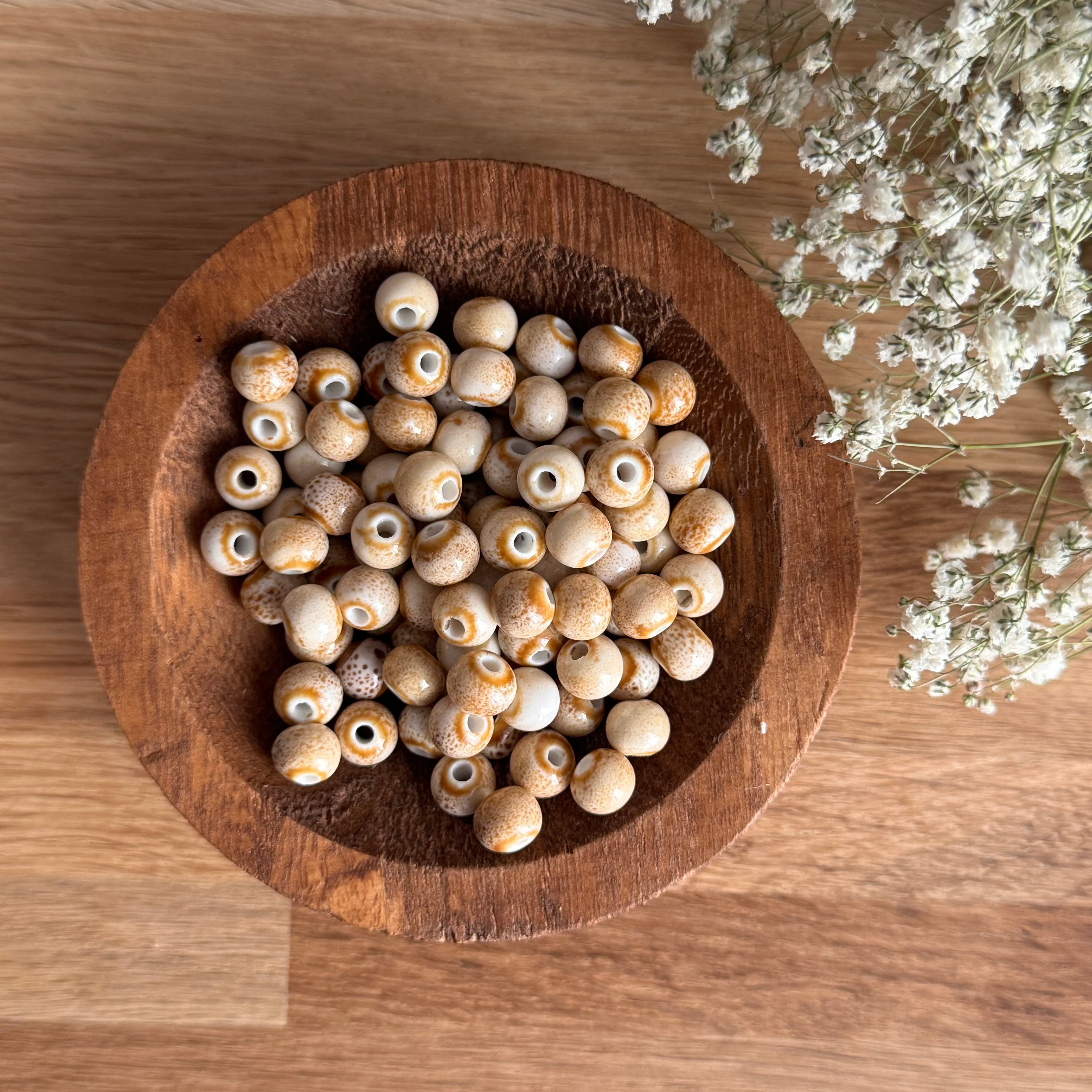 10 x Hellbraune runde Perlen aus Keramik | 8 mm | Für Mikromakramee, Schmuck & DIY‘s