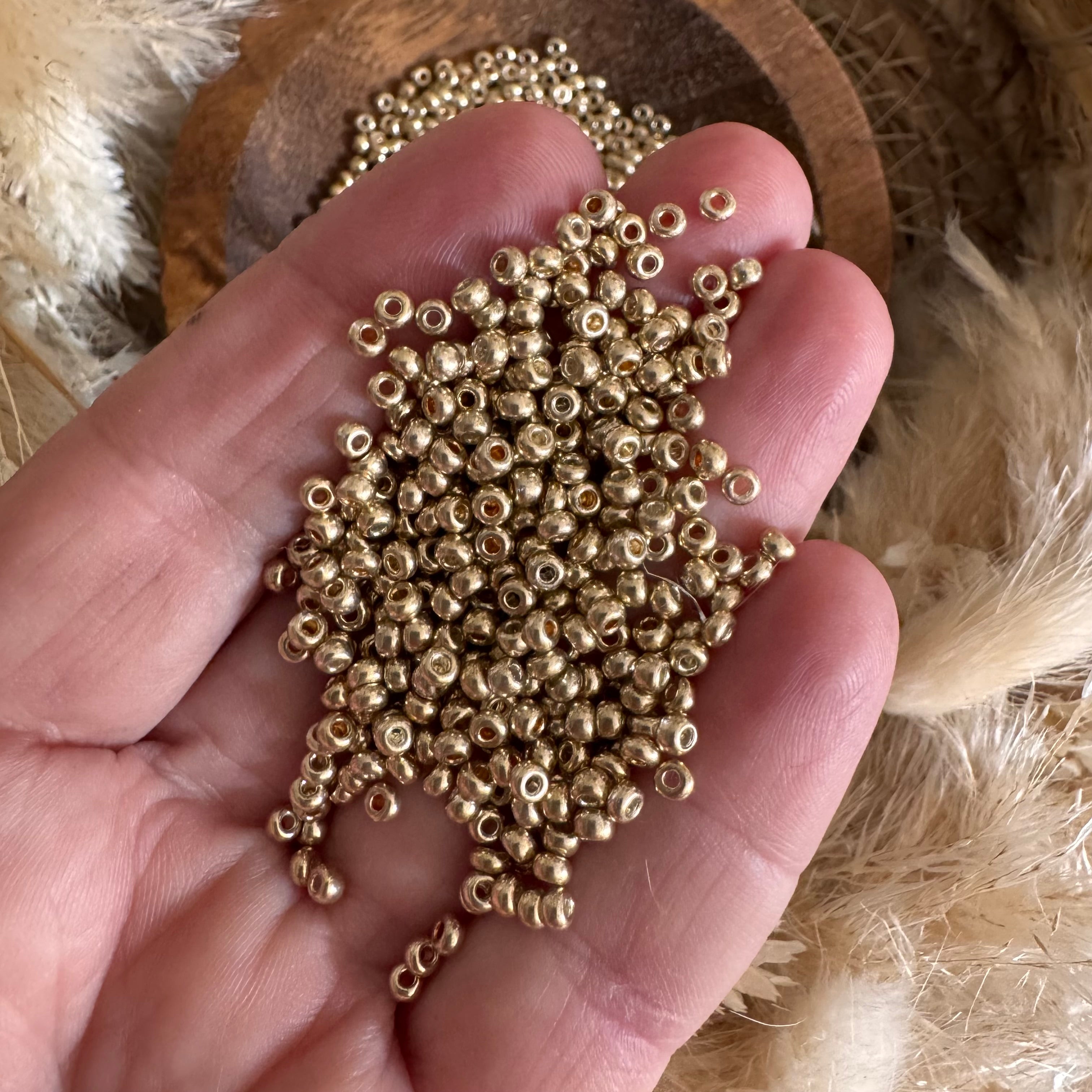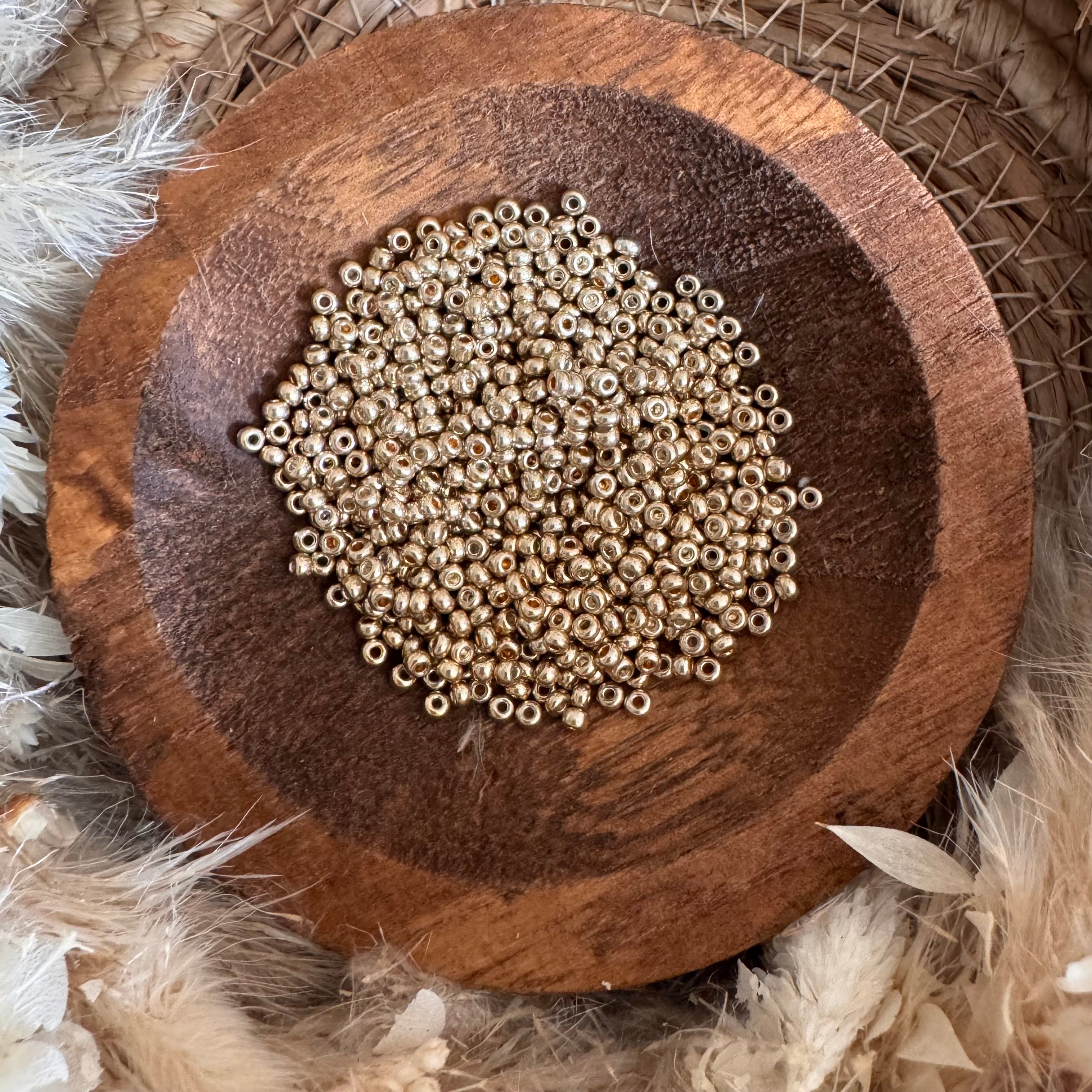 100 x Glasperlen | in Metallic Gold | 3 mm | Für Mikromakramee, Schmuck & DIY‘s