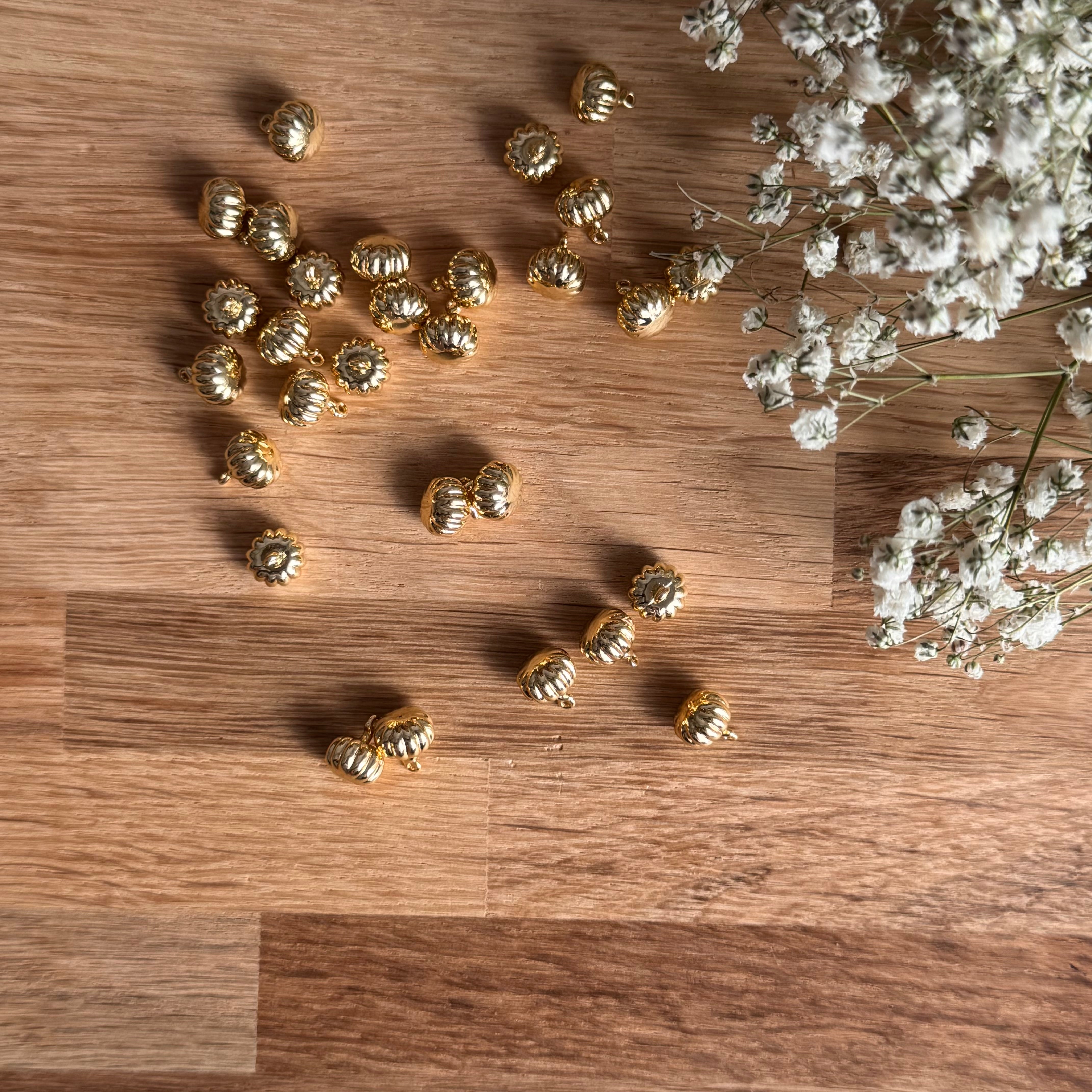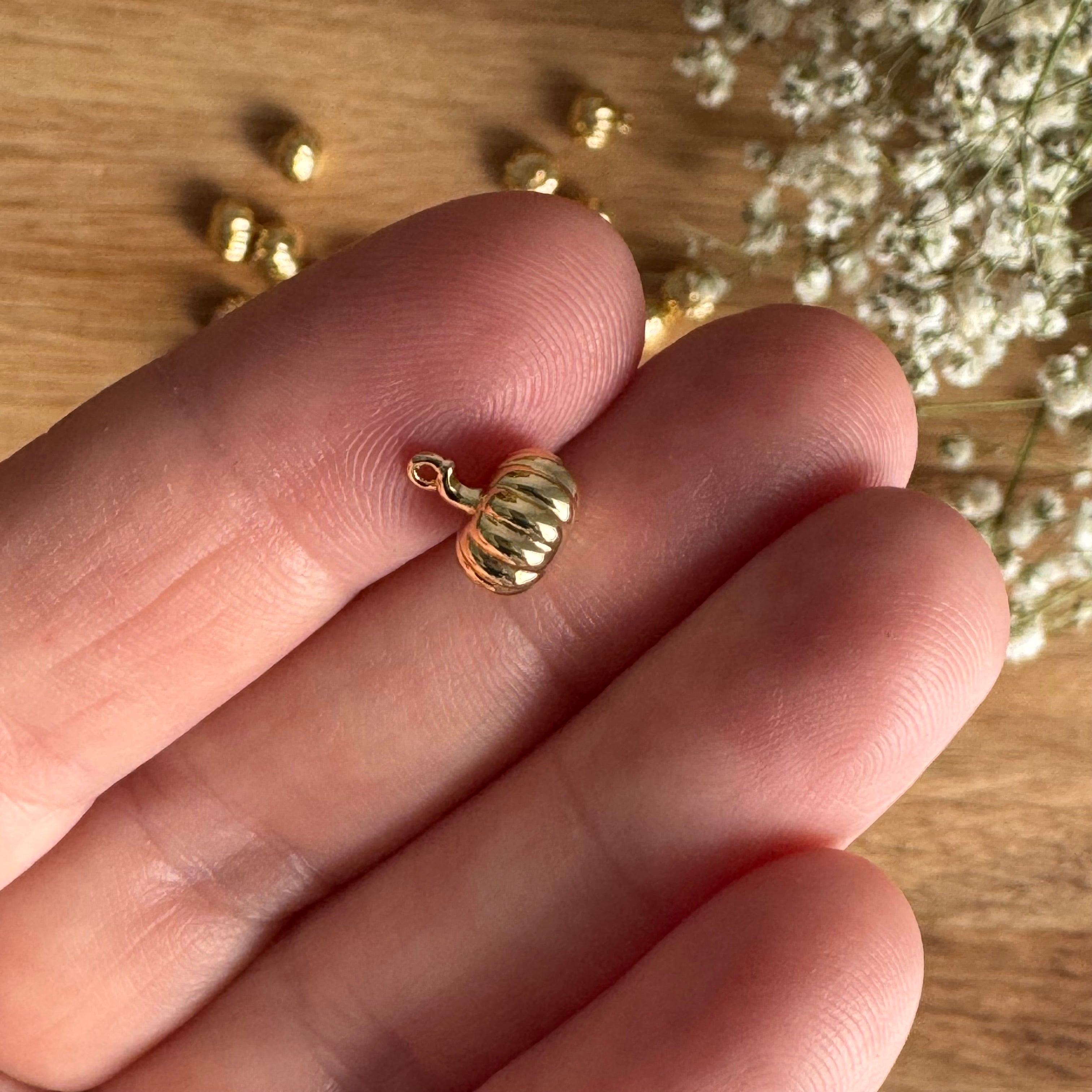1 x Kürbis Anhänger 14K vergoldet (nickelfrei) - 8 x 8 mm Mikro Makramee Schmuck