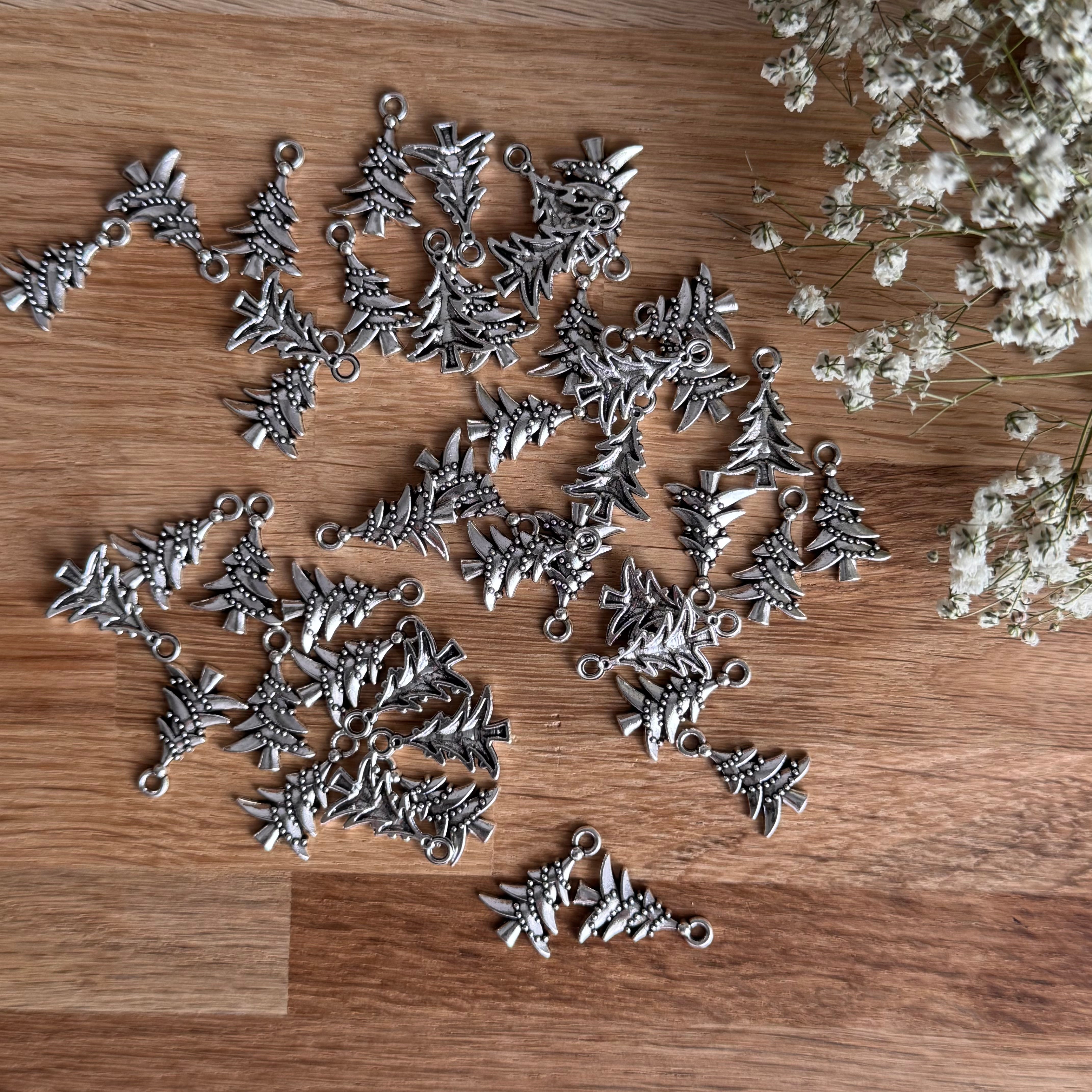 2 x Weihnachtsbaum Anhänger | in Silber | Für Mikromakramee, Schmuck & DIY‘s