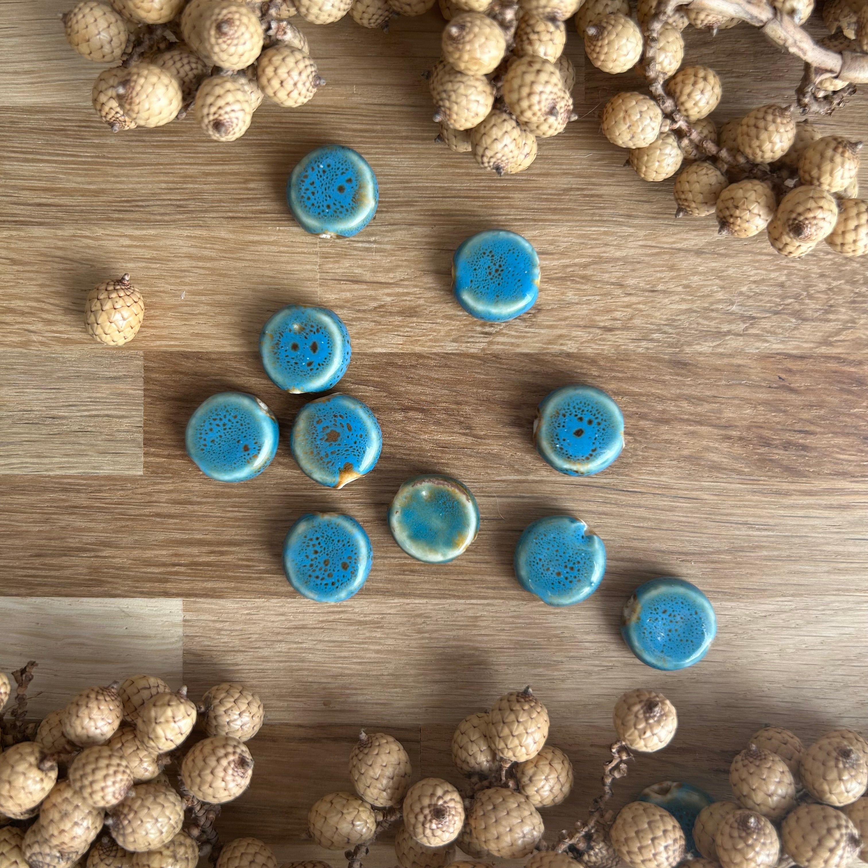 3 x flache, runde Perlen aus Keramik | in Türkis-Blau| Für Mikro-Makramee, Schmuck & DIY‘s