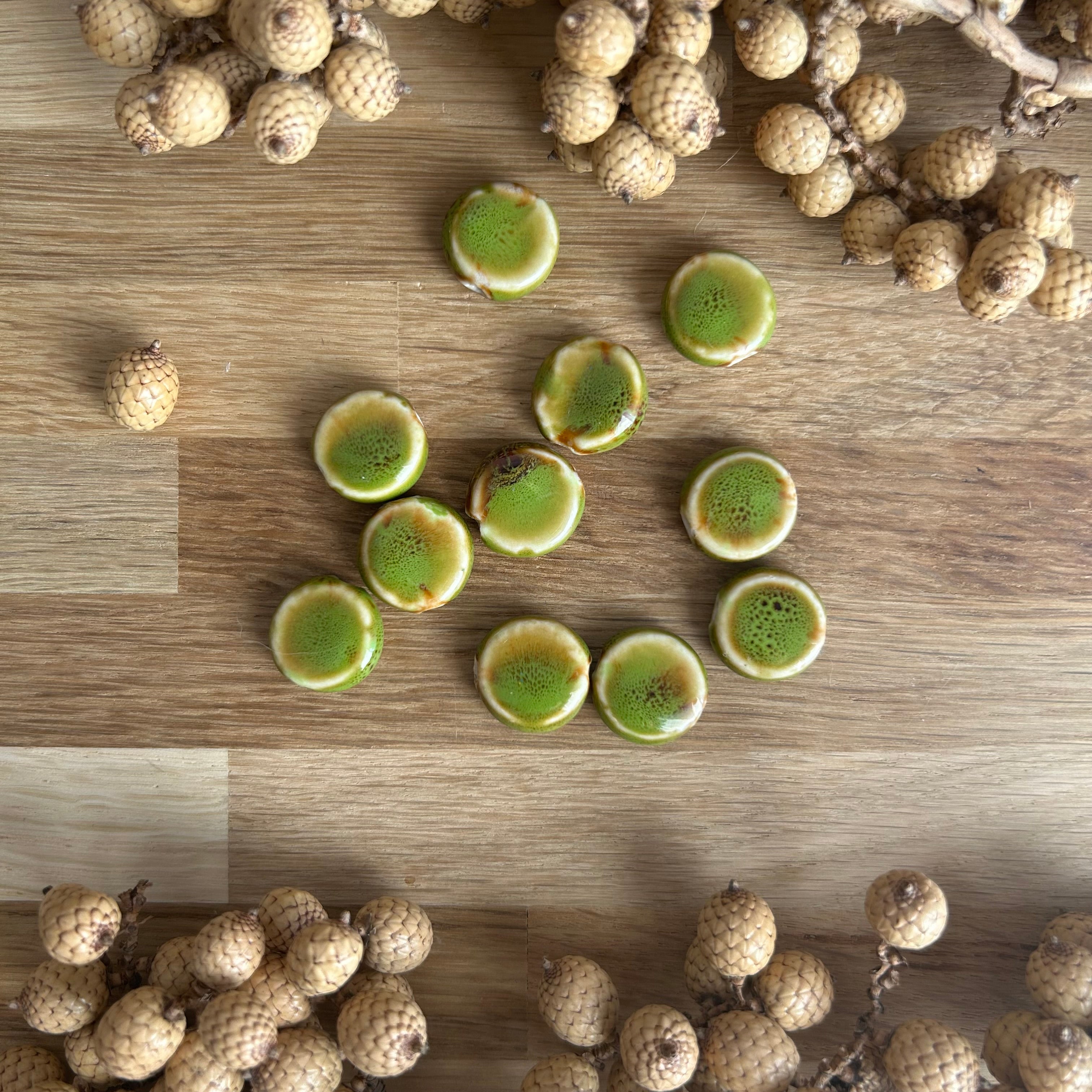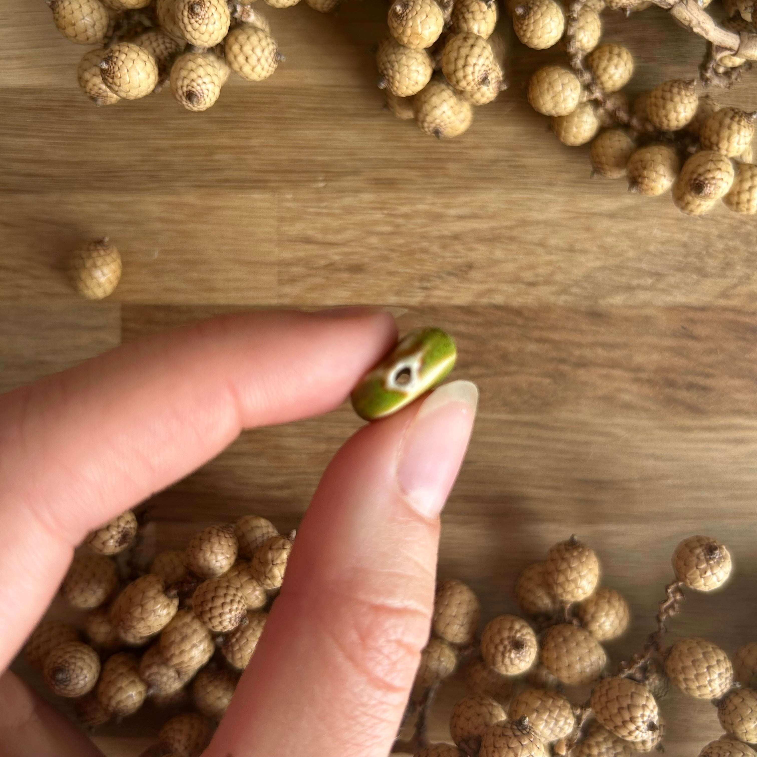 3 x flache, runde Perlen aus Keramik | in Grün | Für Mikro-Makramee, Schmuck & DIY‘s
