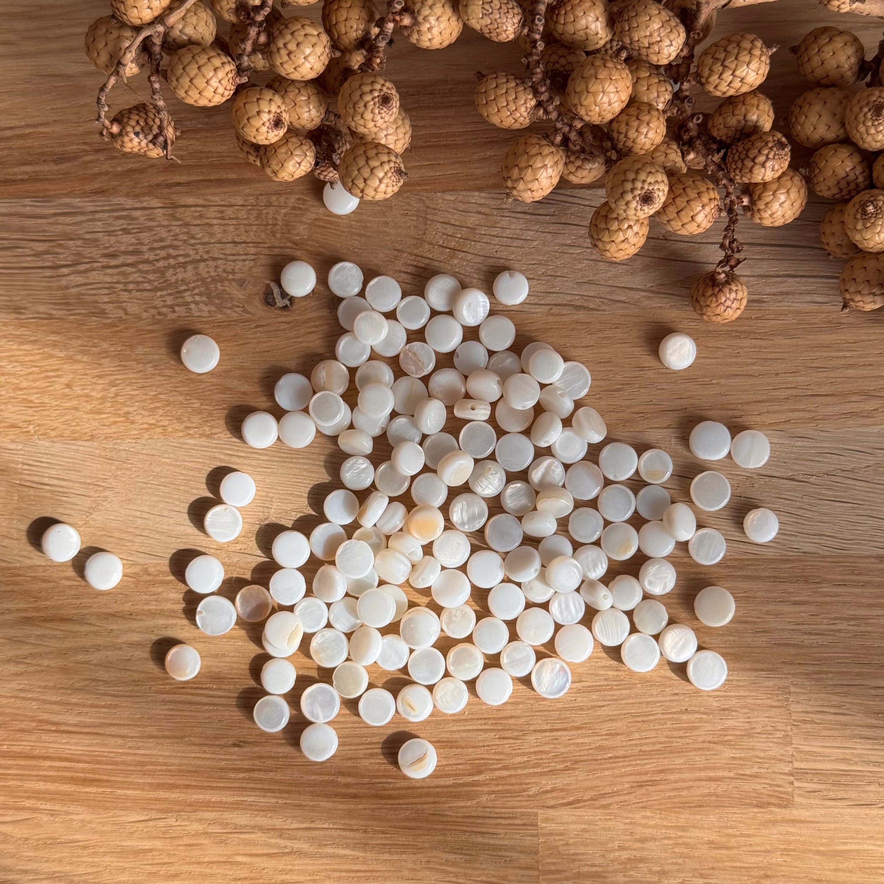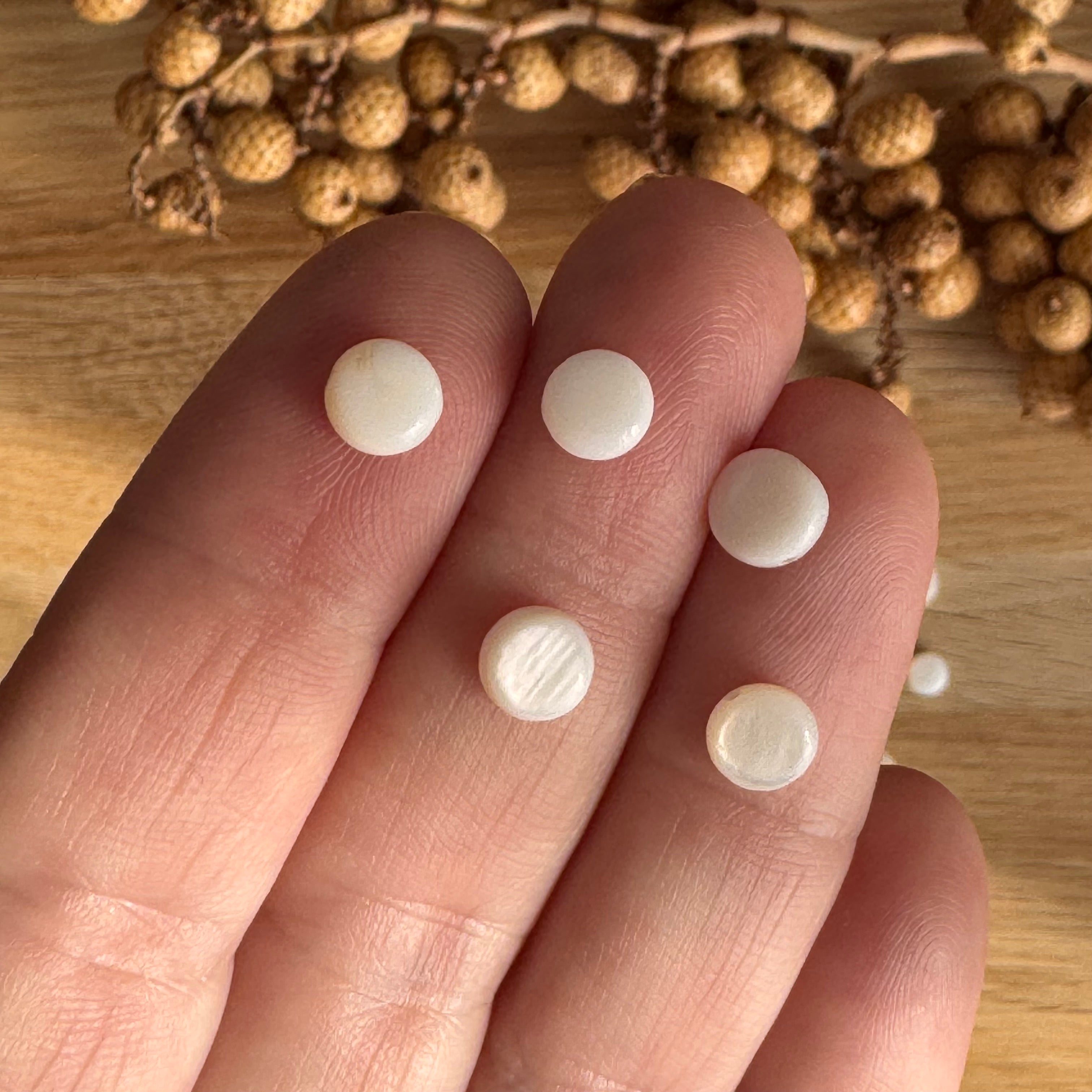 5 x Perlmutt-Perlen rund weiß – DIY Schmuck & Mikro-Makramee | 6 mm (Bohrung 0,7 mm)