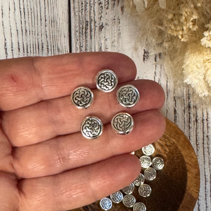 5 x Perle mit Blume flach Silber Mikro-Makramee DIY Schmuck