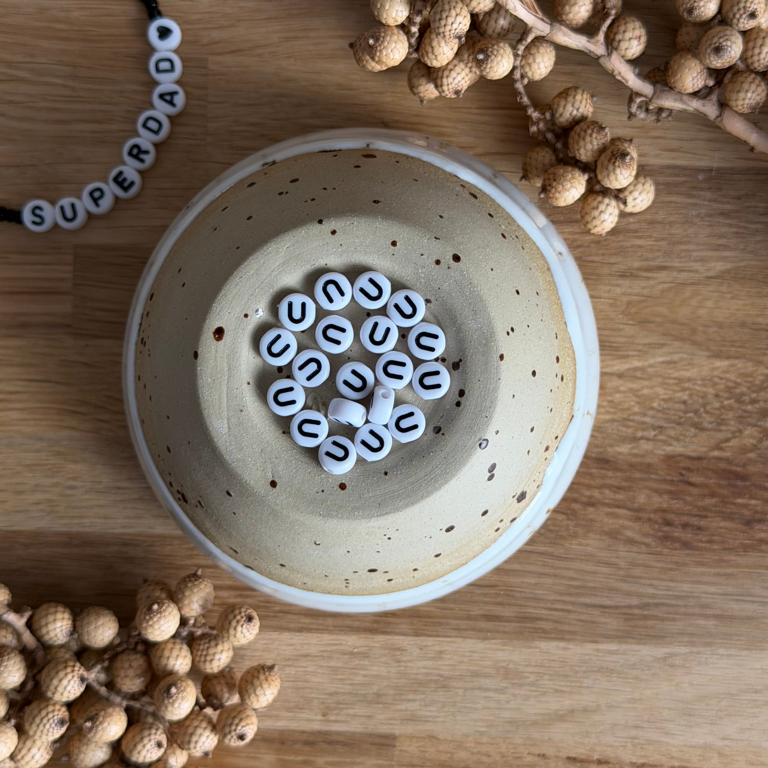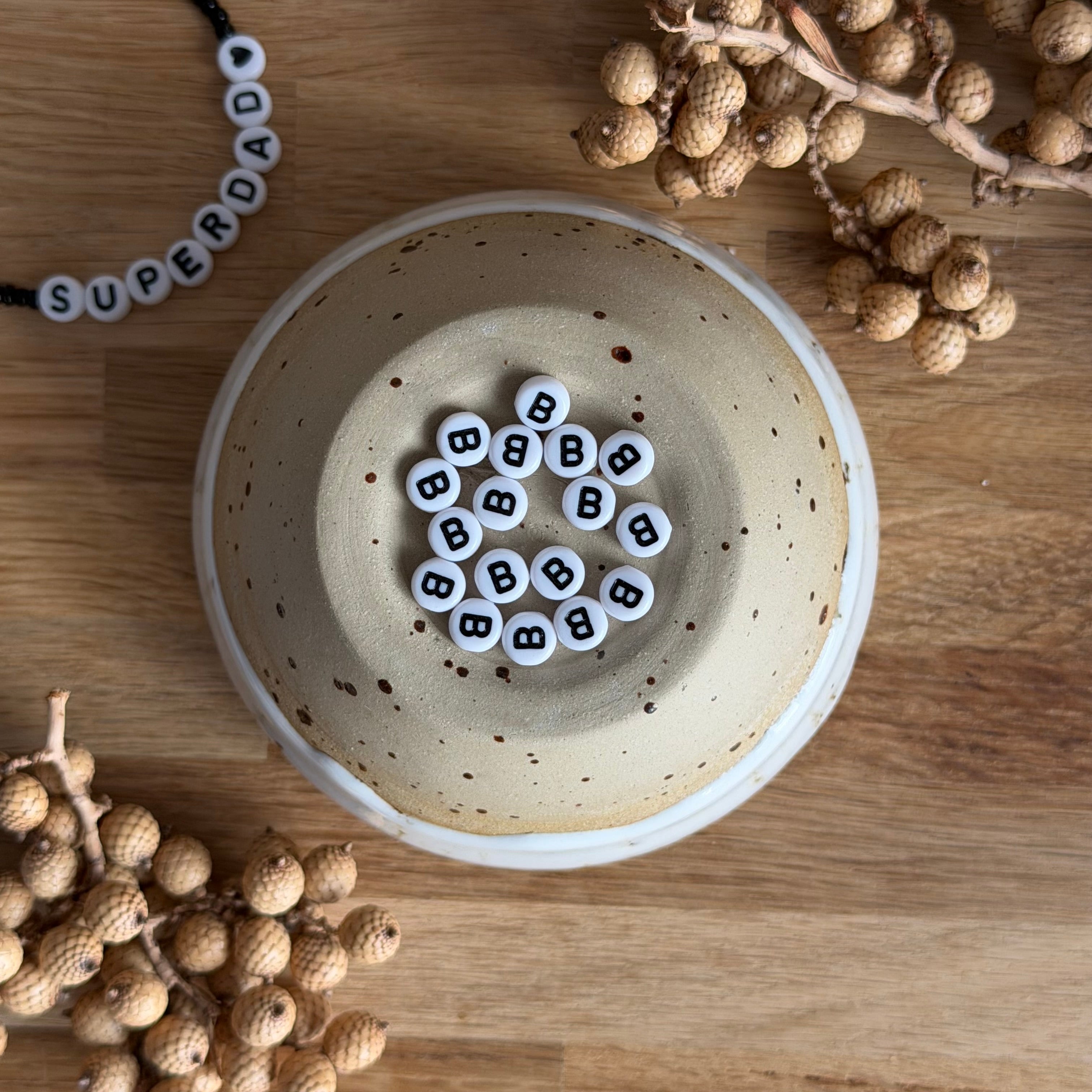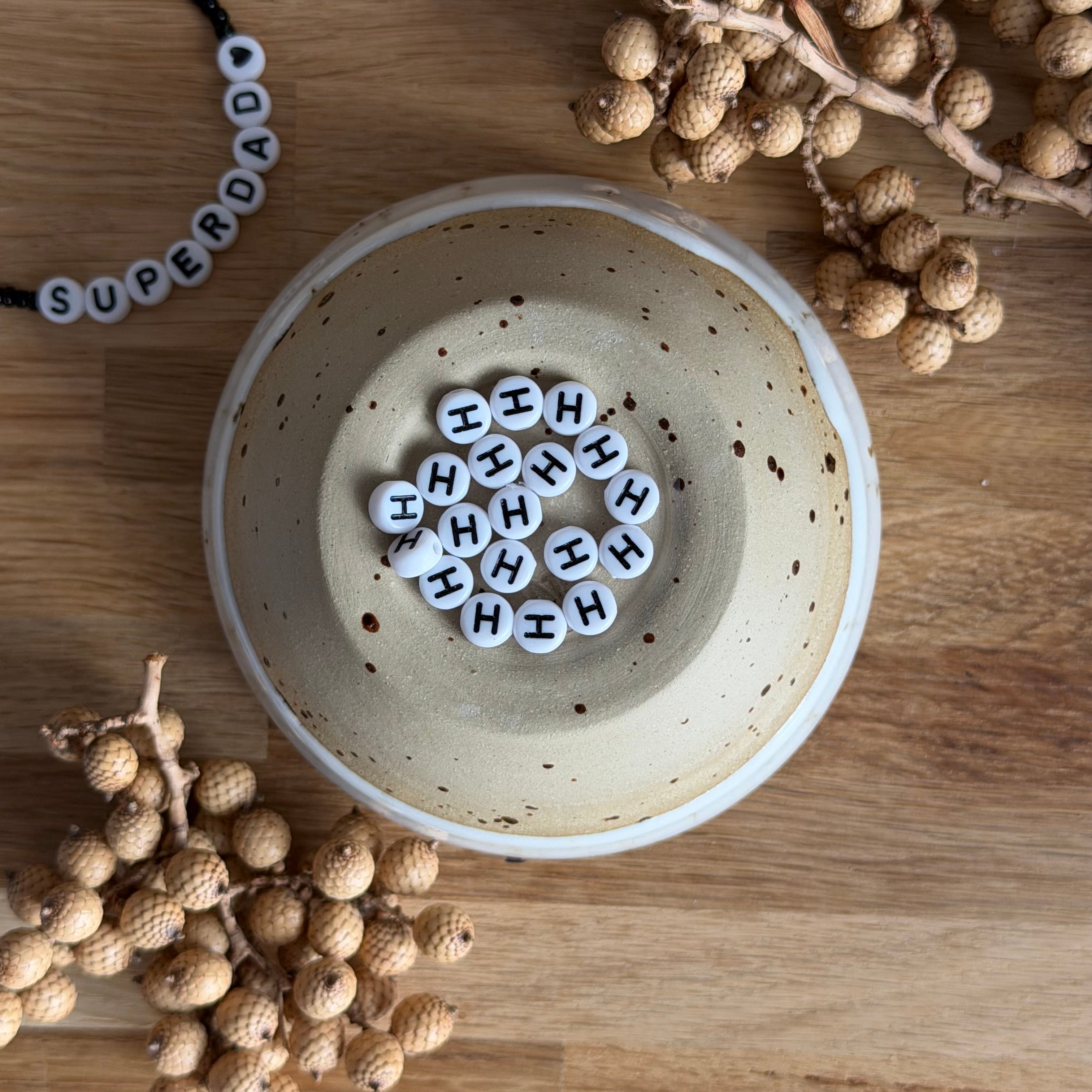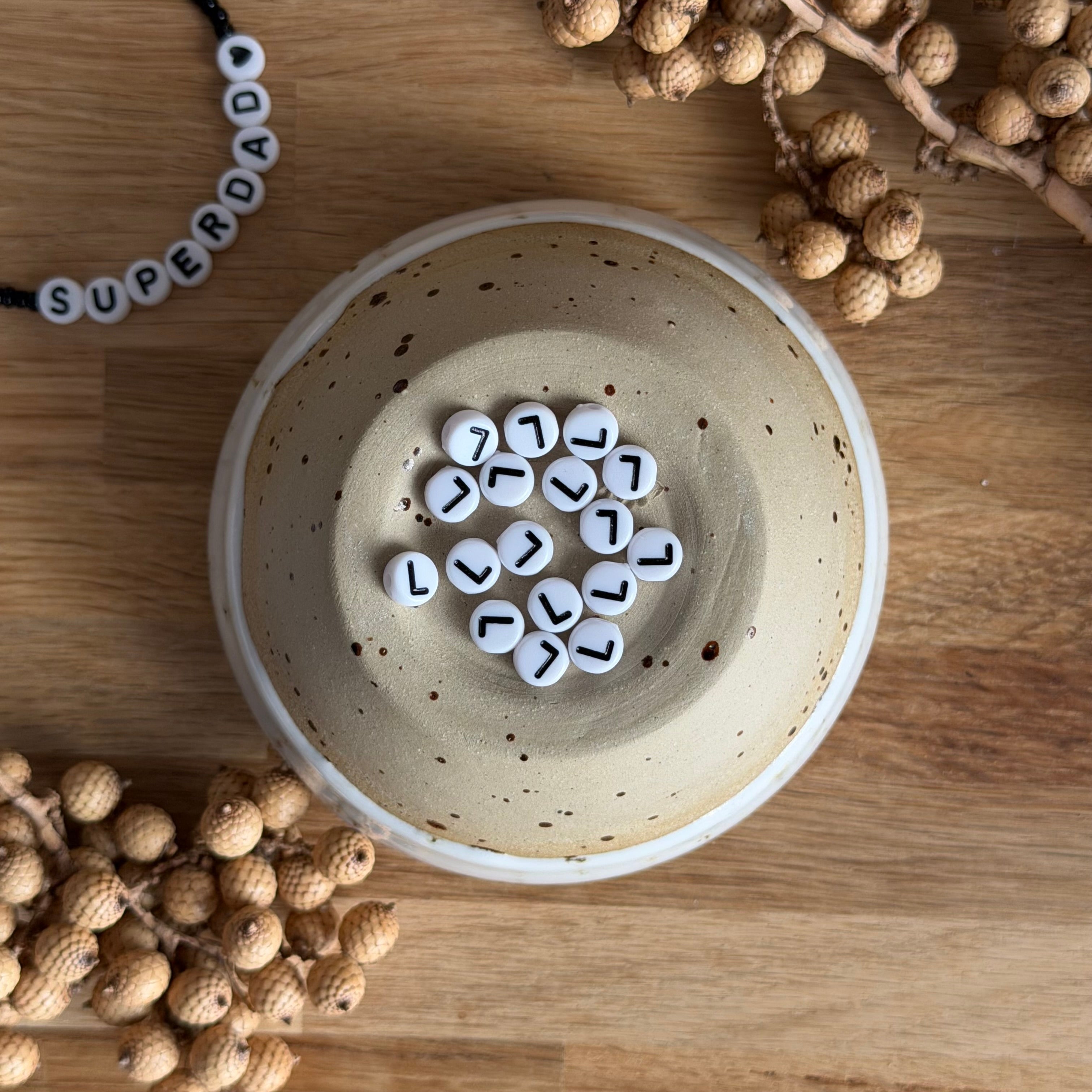 1 x Weiß Schwarz A-Z Buchstabenperlen Acryl für personalisierte DIY- und Makramee-Projekte