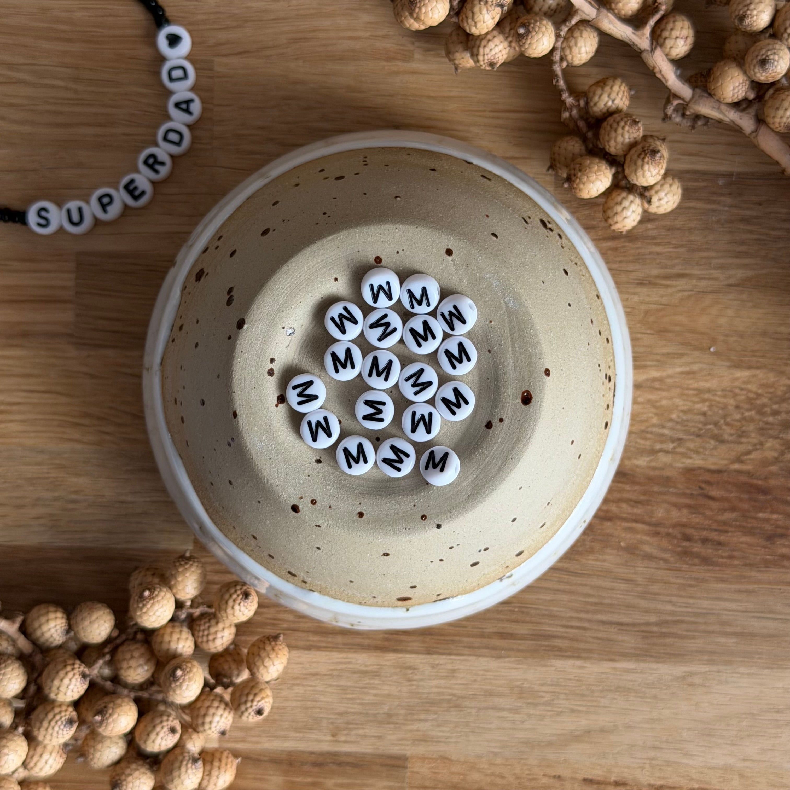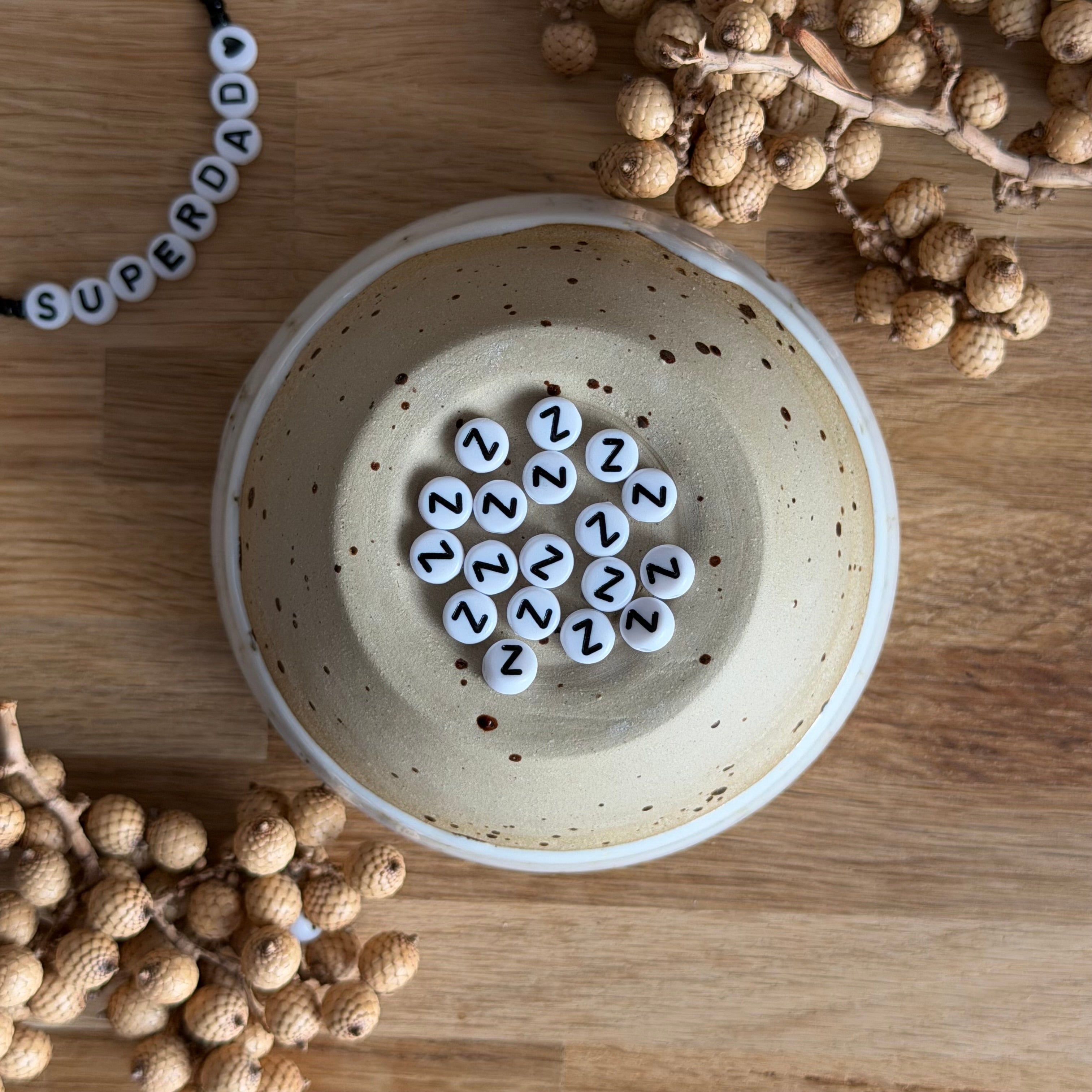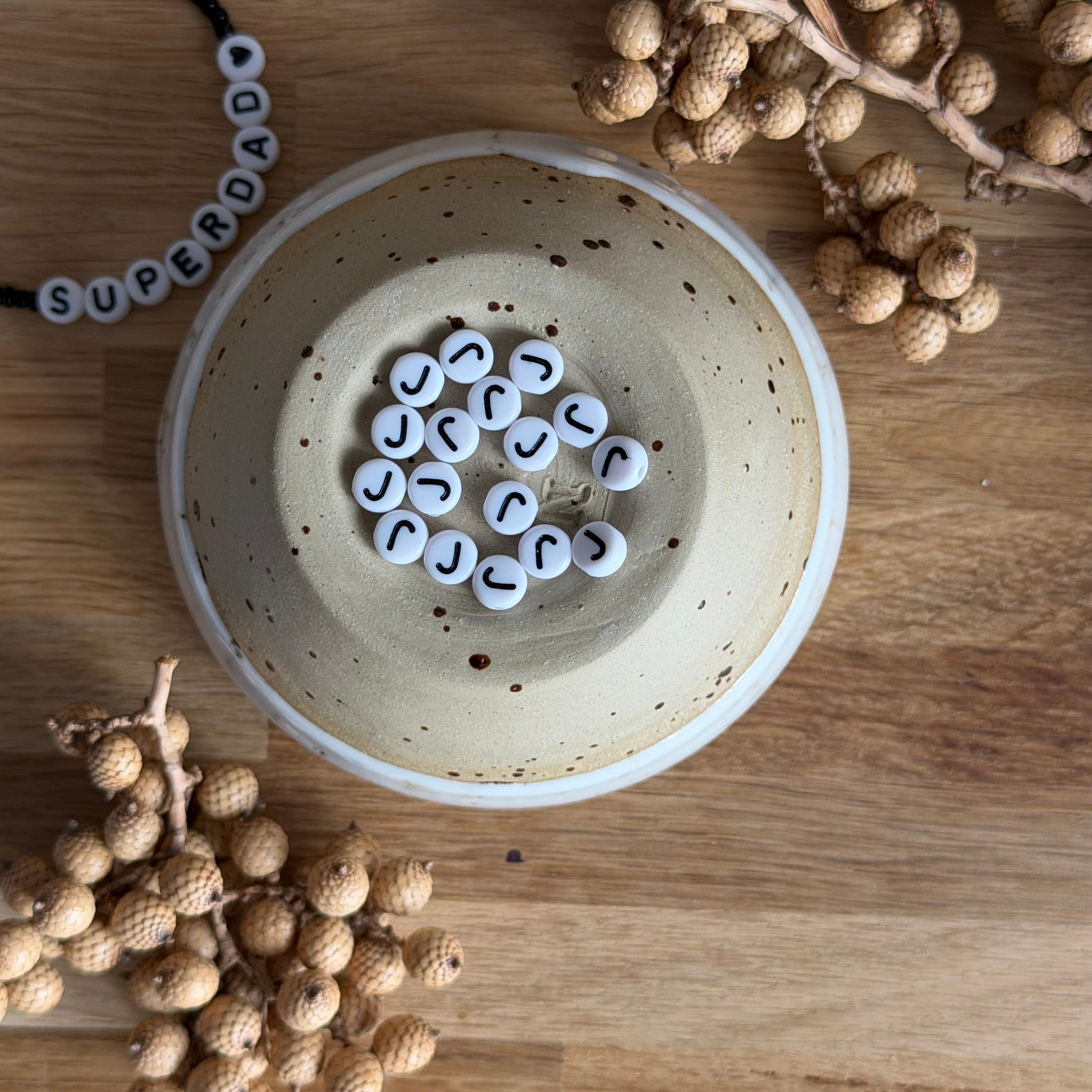 1 x Weiß Schwarz A-Z Buchstabenperlen Acryl für personalisierte DIY- und Makramee-Projekte