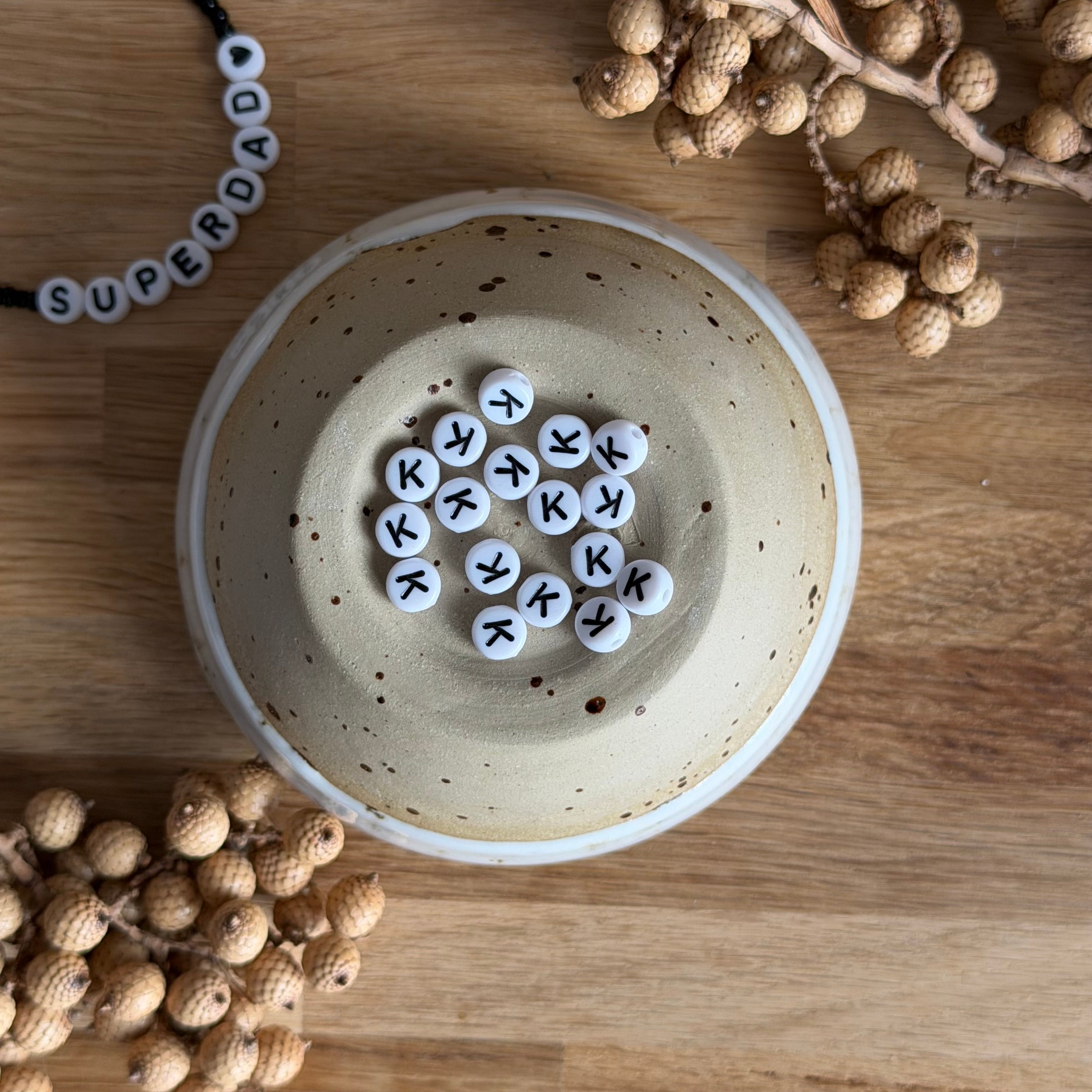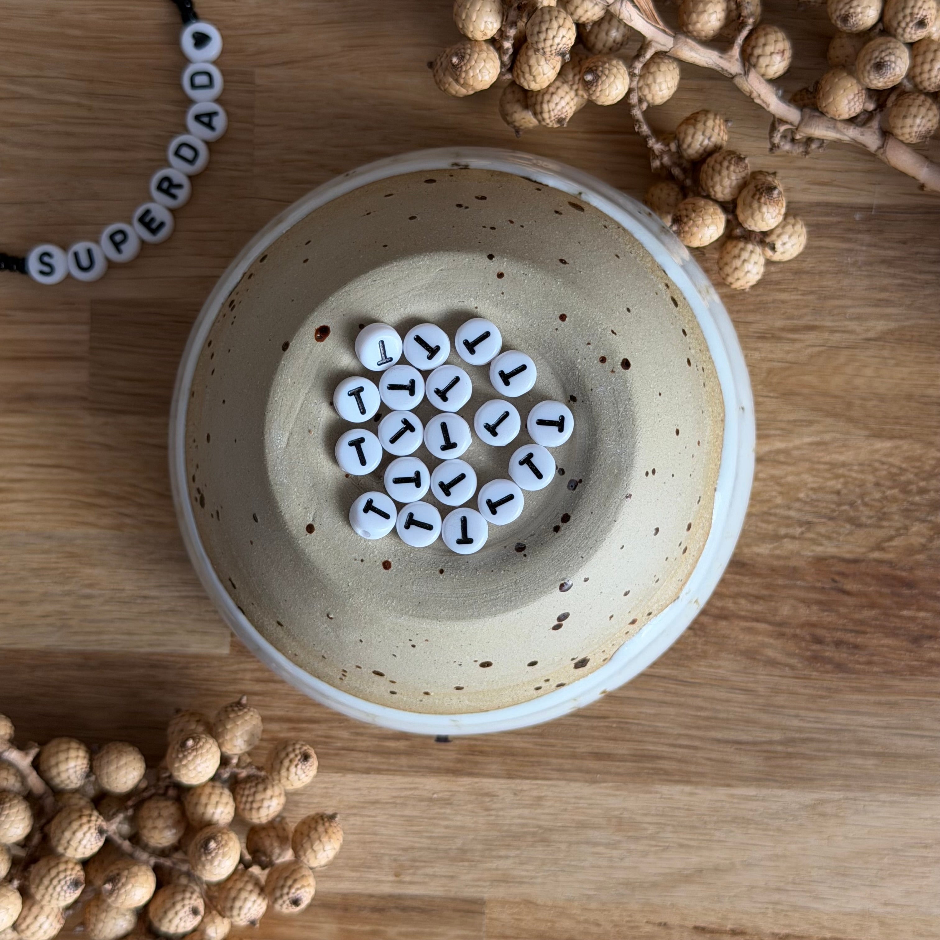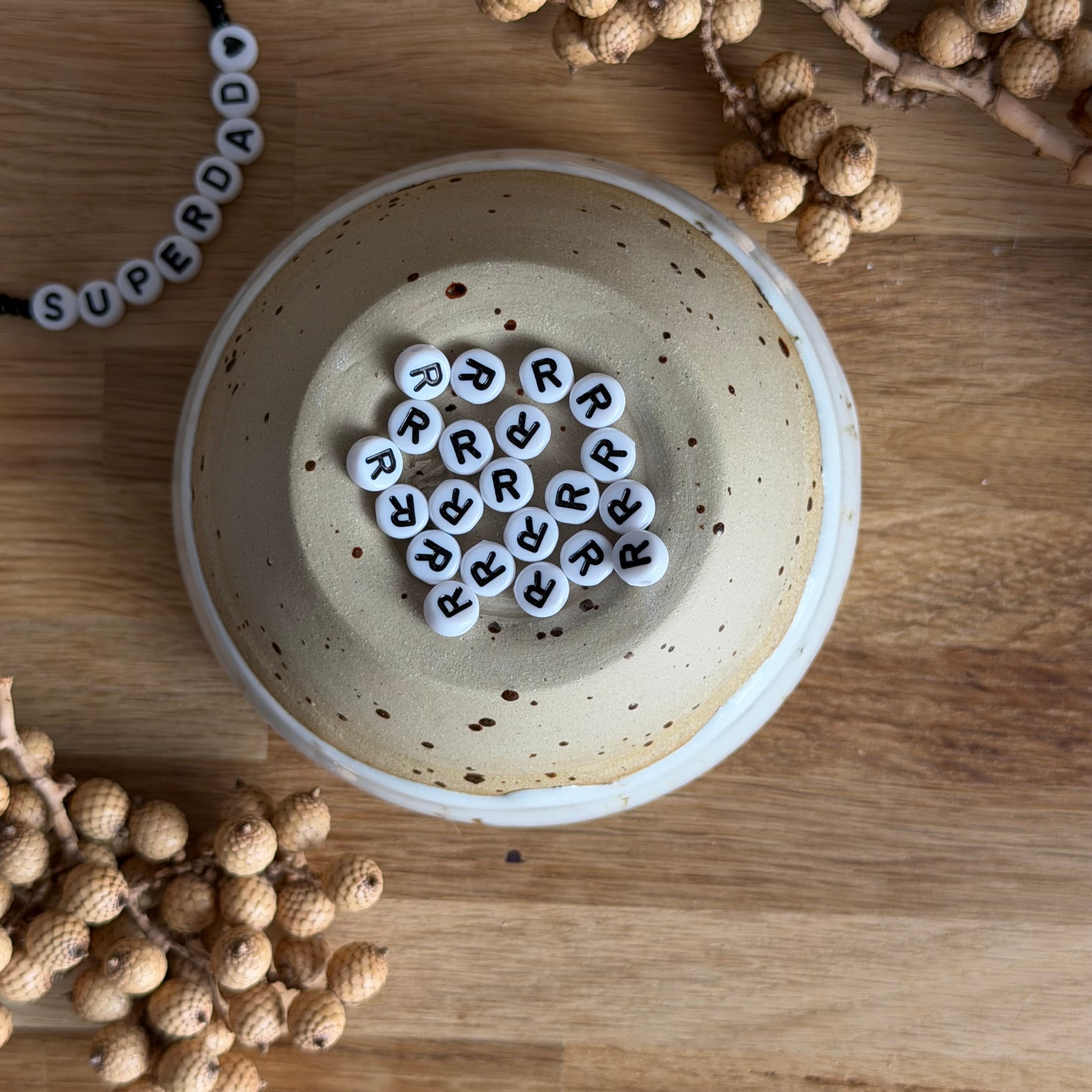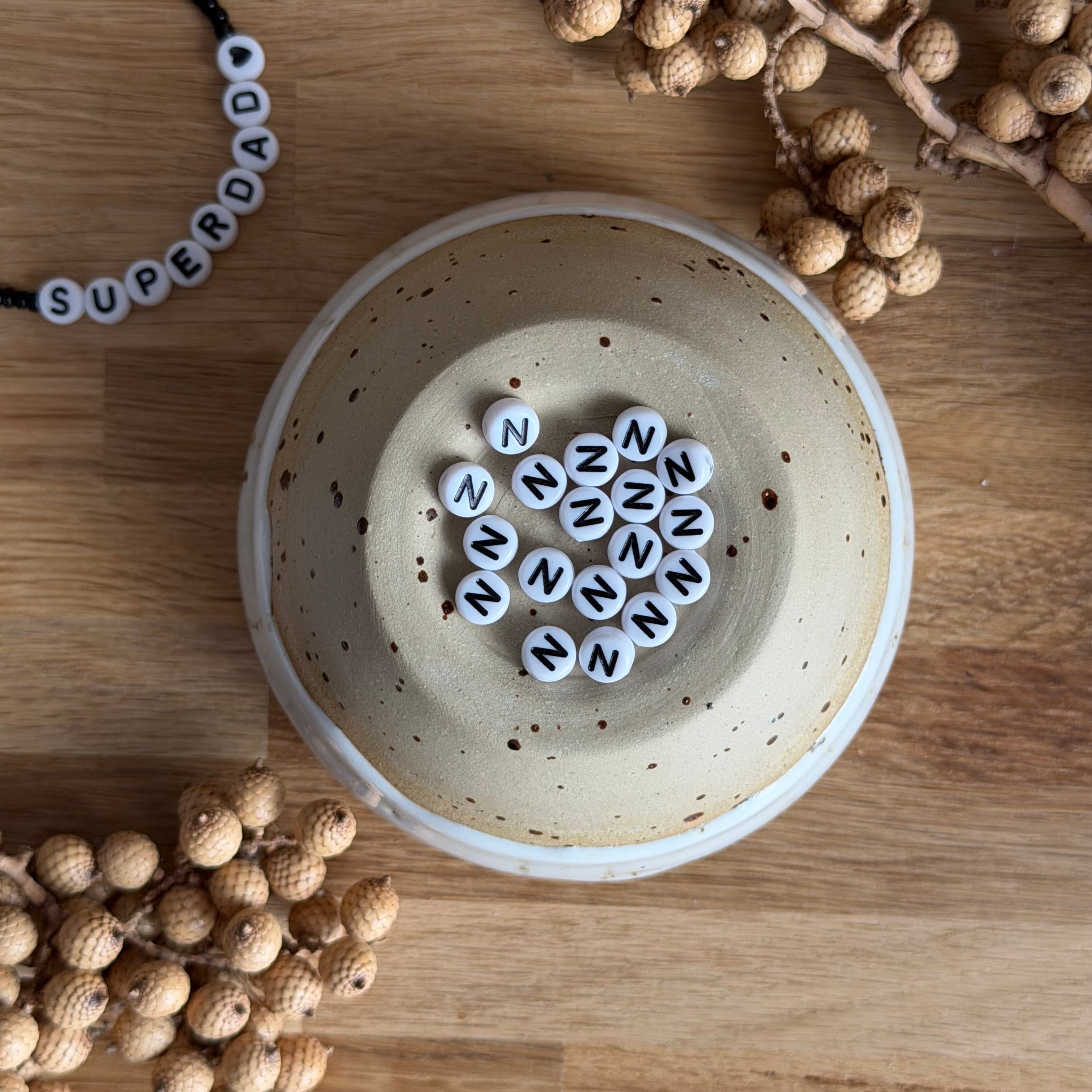 1 x Weiß Schwarz A-Z Buchstabenperlen Acryl für personalisierte DIY- und Makramee-Projekte